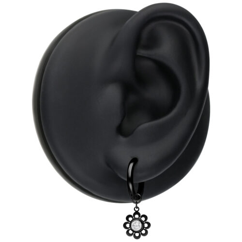 Steel Zirconline + 3 othersMini Crystal Flower Hoops Pair – Black Metal