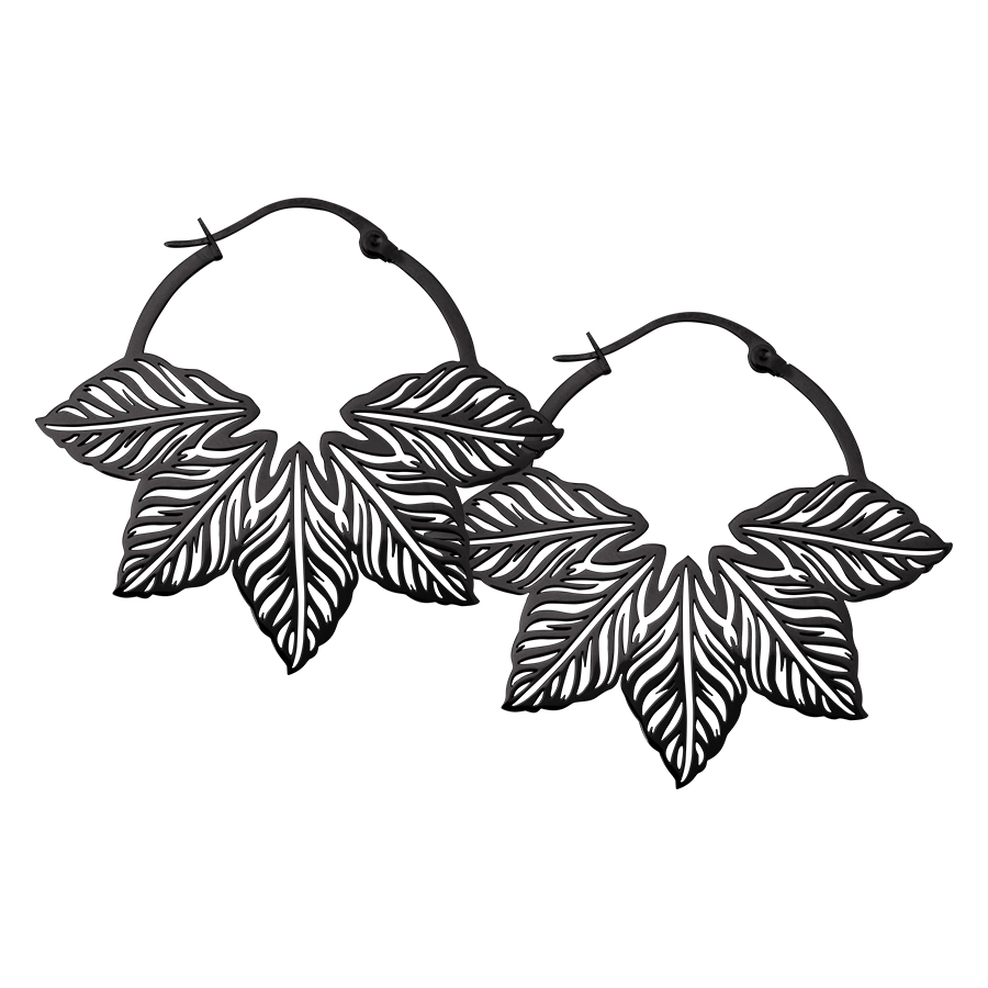 These beautiful surgical steel earrings are named “Abey”, which is the Native American Omaha translation of “leaf”. If you have been looking for the perfect set of leaf earrings, these are made with surgical steel. The high-quality surgical steel earrings are safe for those with sensitive skin.Thanks to our high-end coating , the colour of your earrings remains vibrant and scratch-resistant . They are wearable both through your earlobes and through your tunnels. The hoops have a width of 49.0 mm and a total length of 55.8 mm. Sold as a pair.