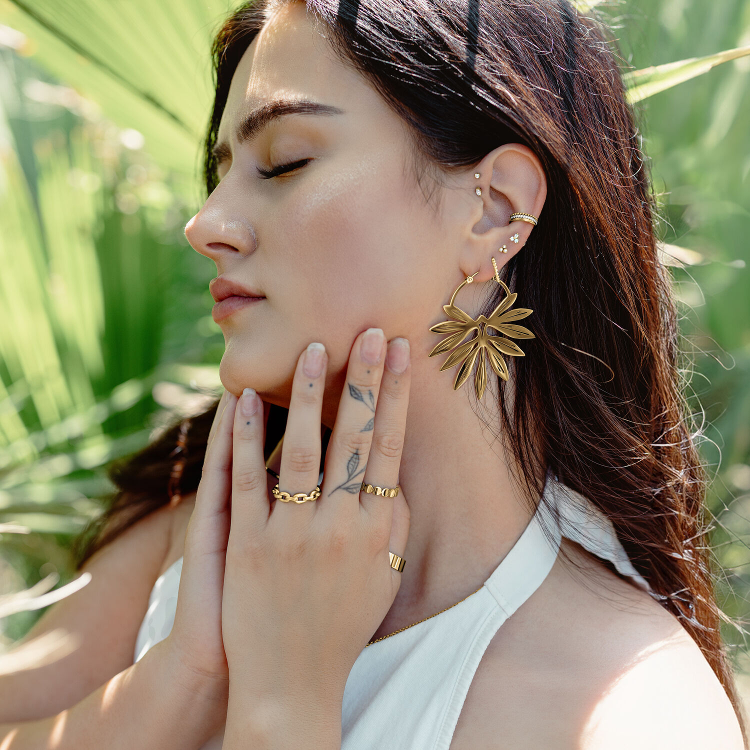 The delicate, nature-inspired leaf design adds a touch of lightness and effortless elegance to your look. Like a soft summer breeze, these earrings bring a sense of natural grace – no frills needed, just the unmistakable artistry of the best designer there is: Mother Nature.