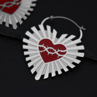 The Sacred Heart, a timeless symbol of devotion and love, is transformed into a rebellious statement through the combination of soft form and harsh, metallic elements. These earrings are perfect for anyone who wants to showcase their individuality and passion with a touch of mystical flair. Ideal for special occasions or as a standout detail in everyday life.