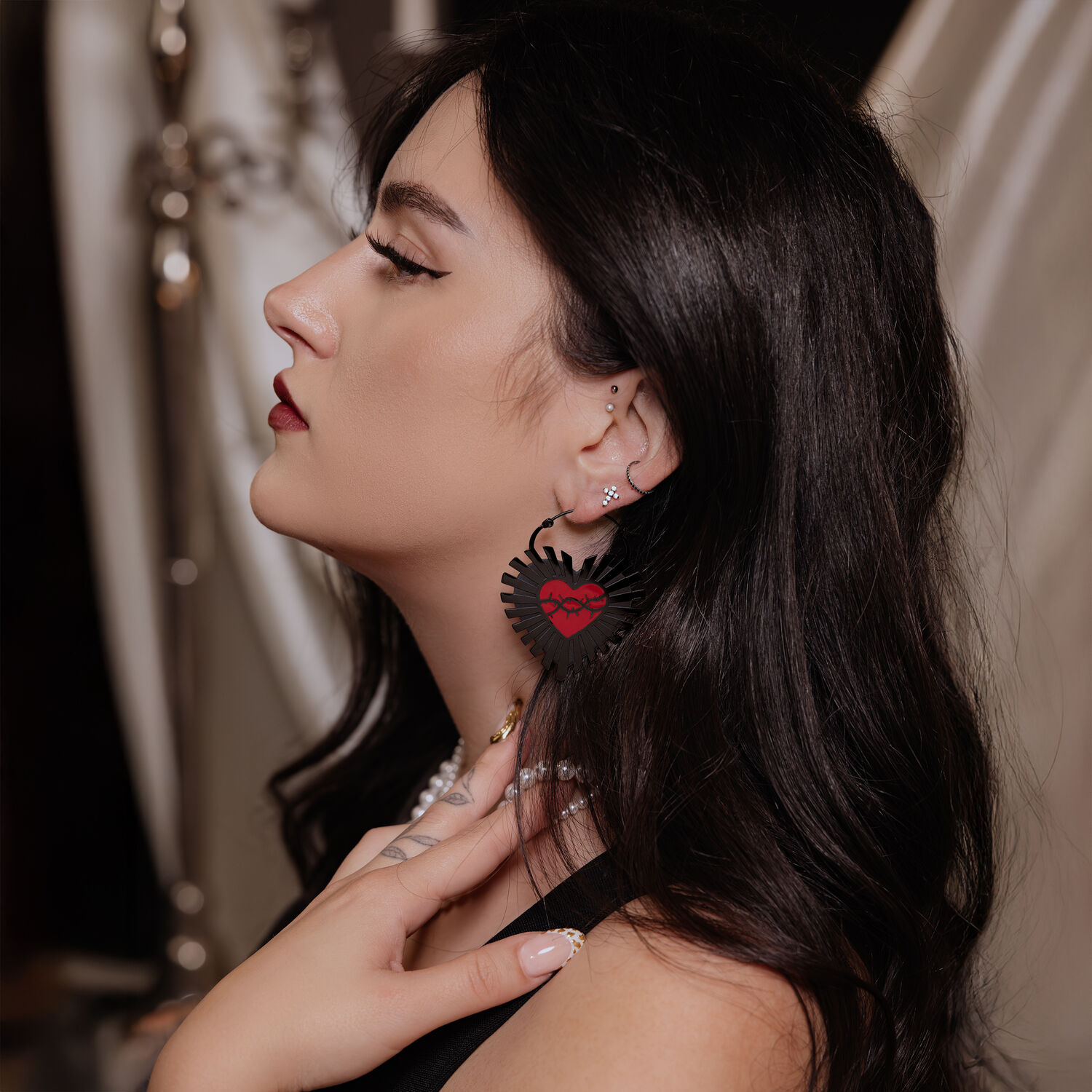 The Sacred Heart, a timeless symbol of devotion and love, is transformed into a rebellious statement through the combination of soft form and harsh, metallic elements. These earrings are perfect for anyone who wants to showcase their individuality and passion with a touch of mystical flair. Ideal for special occasions or as a standout detail in everyday life.