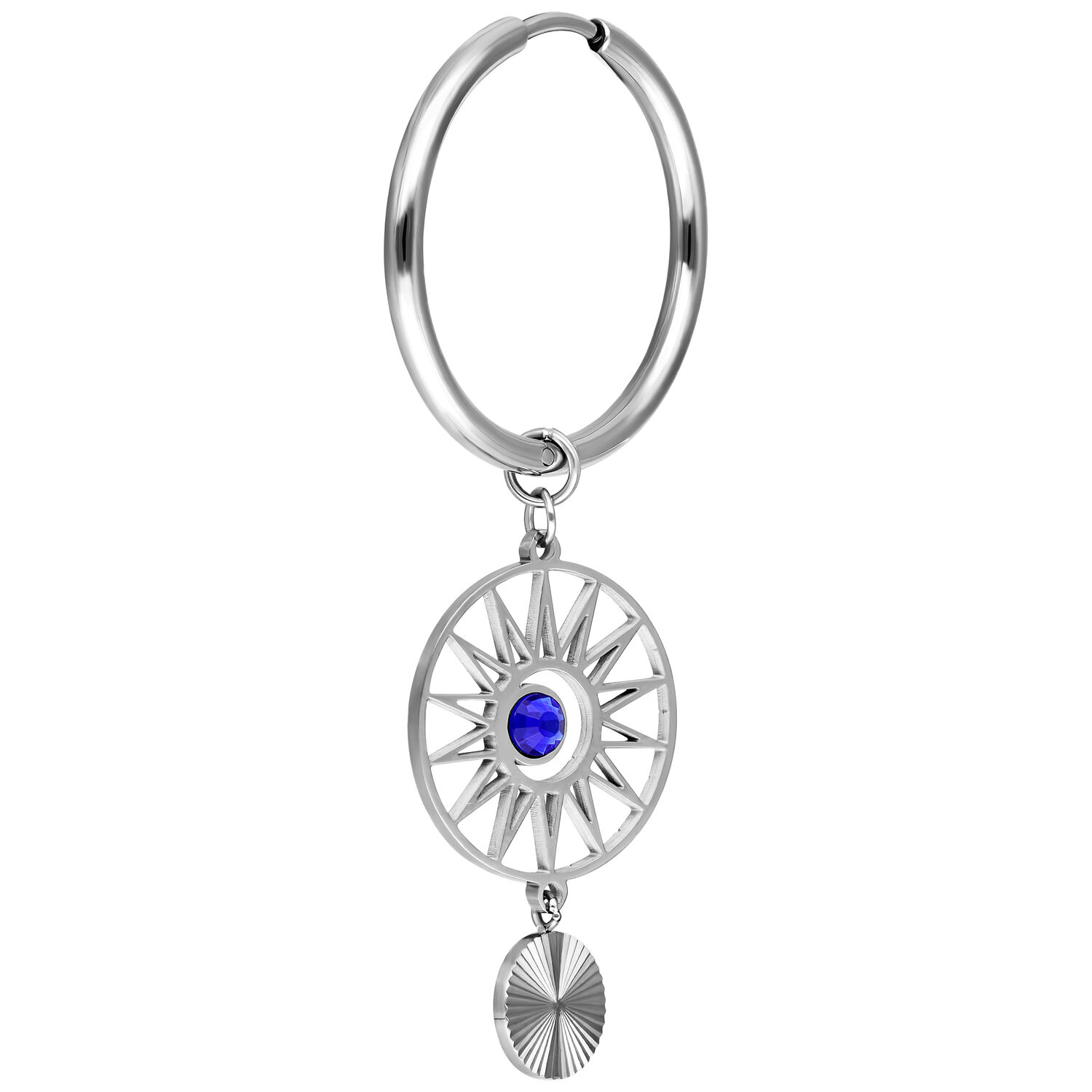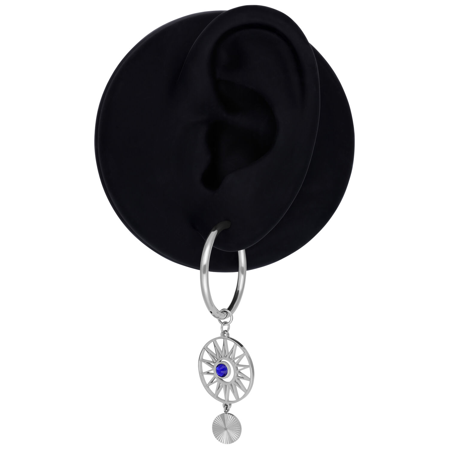Sold as a pair, these hoops are designed exclusively for lobe piercings. A distinctive ear jewelry piece for clean styles with a celestial touch.