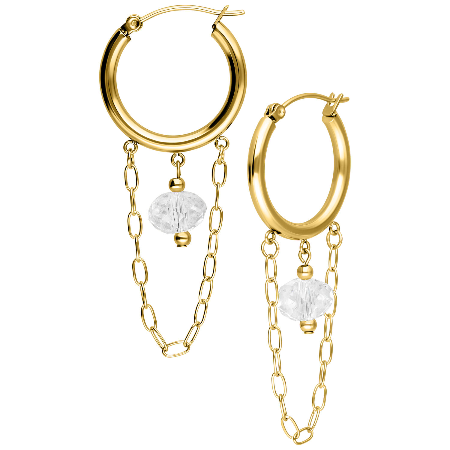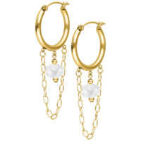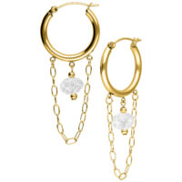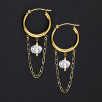 The Edgy White Stone Hoops are a must-have for anyone who loves bold earrings with a touch of modern elegance. The design combines high-quality hoops with two delicate chain details and a faceted white crystal stone – a stylish eye-catcher for any ear. Available in classic silver or elegant gold, these hoops perfectly complement casual street styles, minimalist looks or sophisticated outfits.