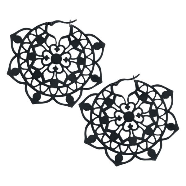 The Mandala flower earrings you didn’t know you needed. These statement flower earrings are inspired by a mandala design. These floral hoop earrings are made of high-quality stainless steel and coated with our premium black coating. They are scratch resistant and remain the same quality. These flower earrings are suitable for those with sensitive skin. These can be worn in normal ear holes or through tunnels.