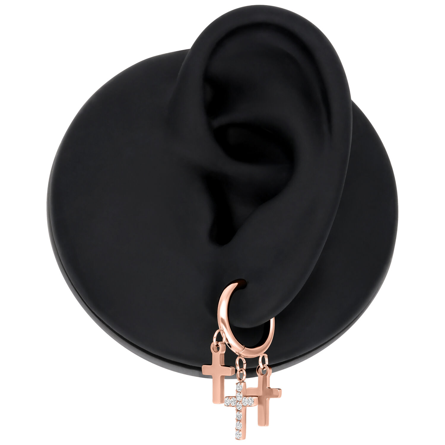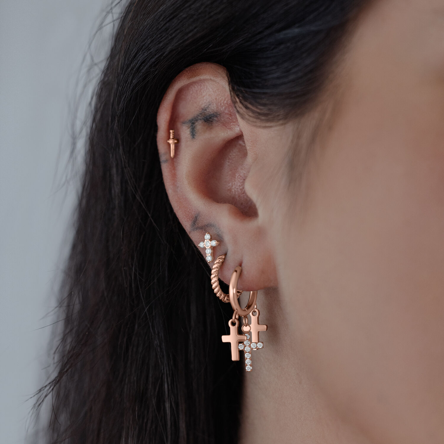 Our earcatchers: Small hinged hoop earrings with cross charms – an absolute must-have for anyone who loves to make a stylish statement.