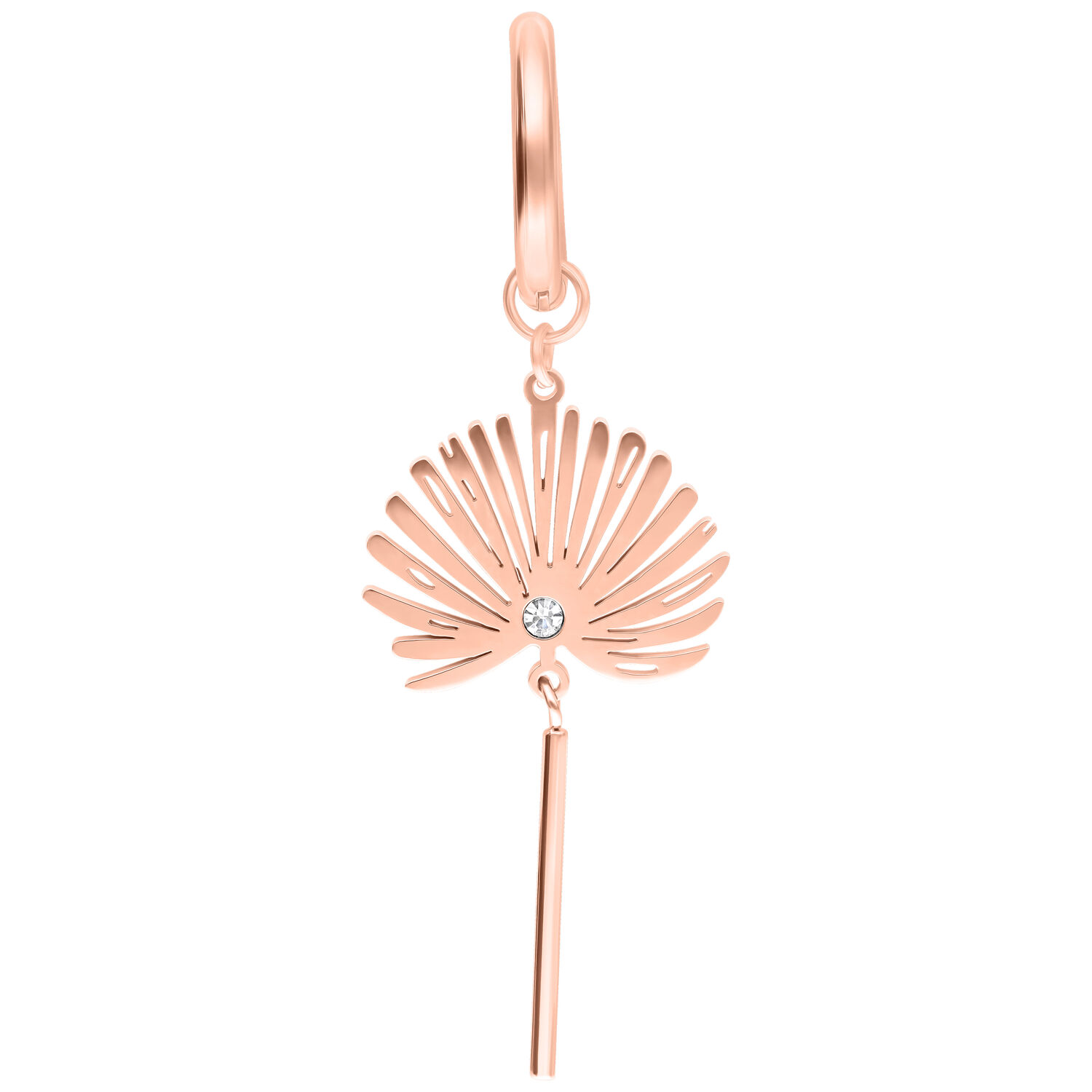These hoops, crafted from high-quality stainless steel, showcase a finely cut pendant in the shape of a stylized petticoat leaf. A sparkling cubic zirconia stone at the center adds a touch of glamour, while the slim bar pendant below brings graceful movement to the design. The blend of lightness and shine makes these earrings the perfect choice for summer outfits, festive occasions, or your personal statement style.