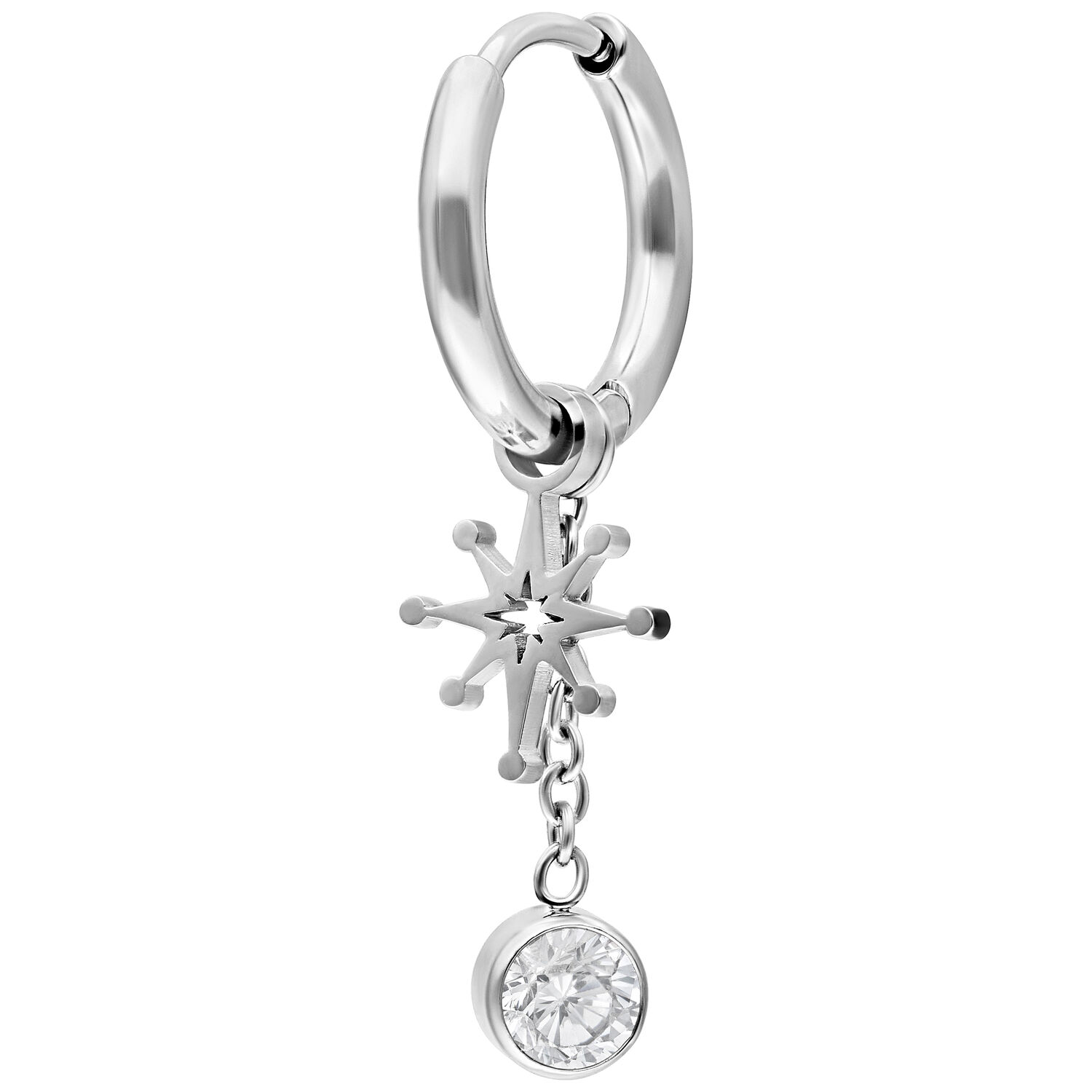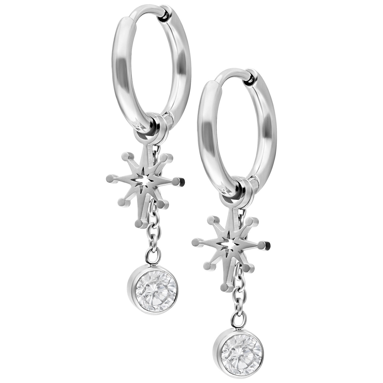Make every moment a highlight! Our Mini Shooting Star Hoops are small hinged hoops with sparkling shooting star charms that add a touch of magic to your look. The glittering design symbolizes luck, hope, and the courage to follow your own path – perfect for those who love to shine.