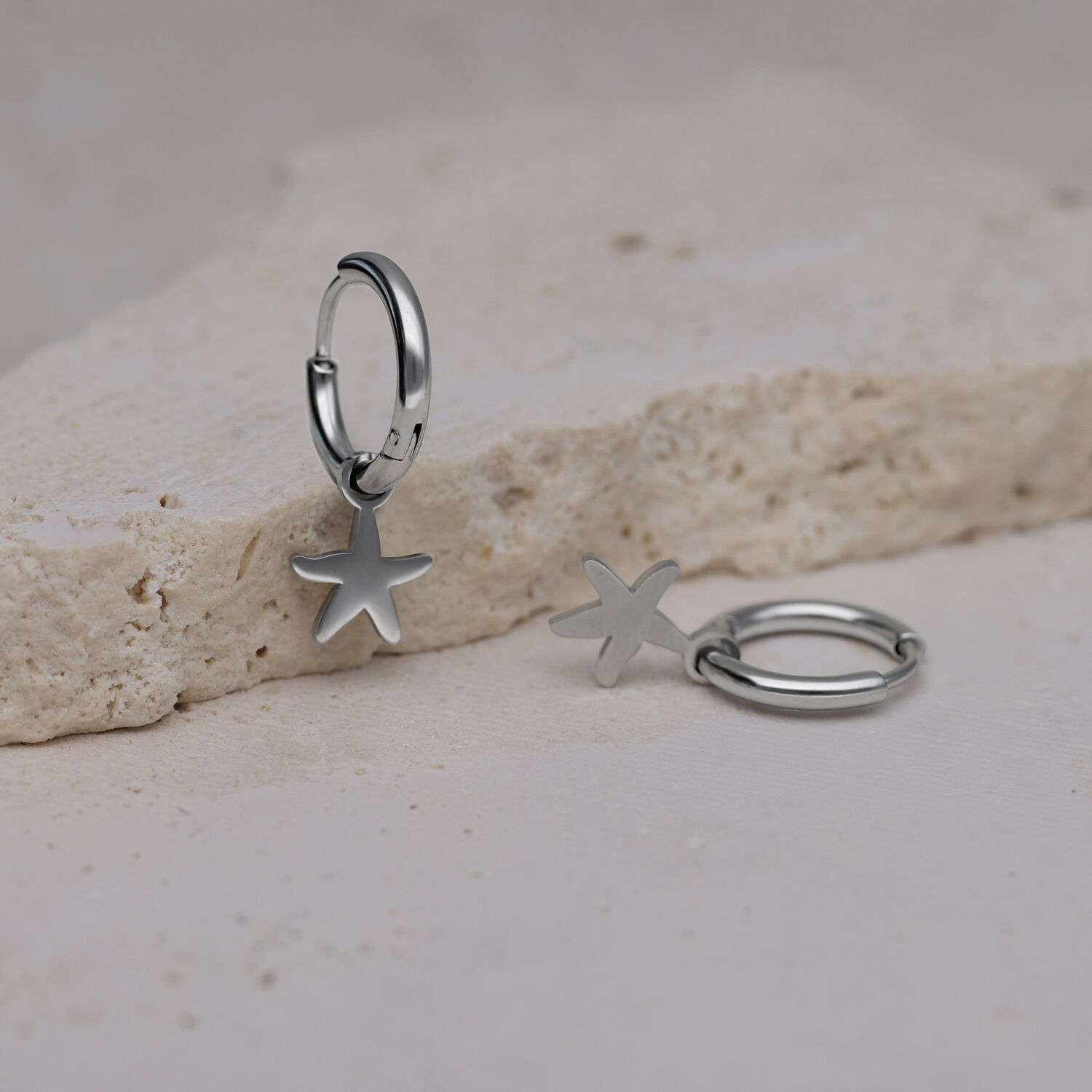 Bring the ocean to your ears! Our Mini Starfish Hoops are small hinged hoops with delicate starfish charms – the perfect accessory for all sea lovers. The detailed design adds a fresh, playful touch to your look and evokes memories of sun, sand, and salty air.