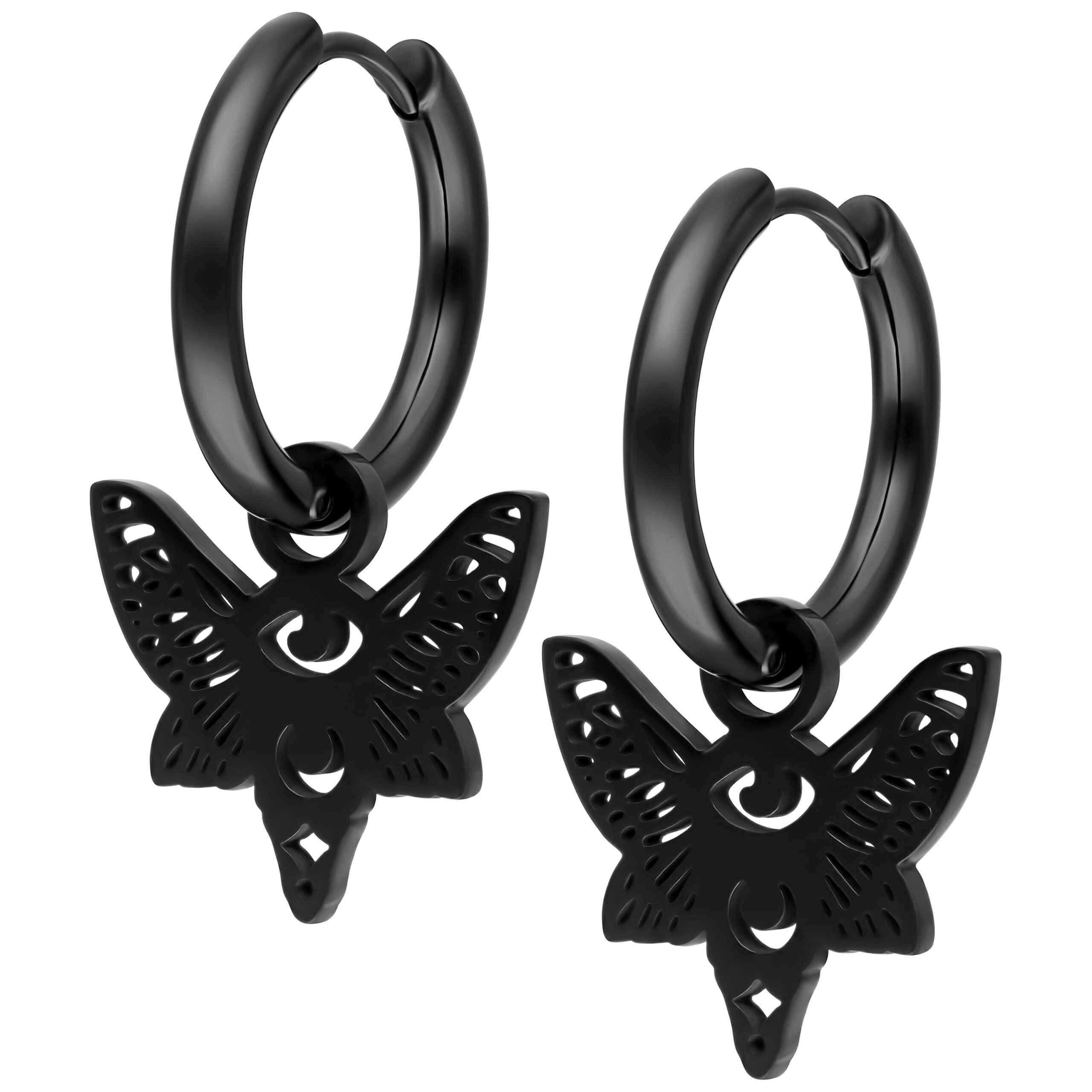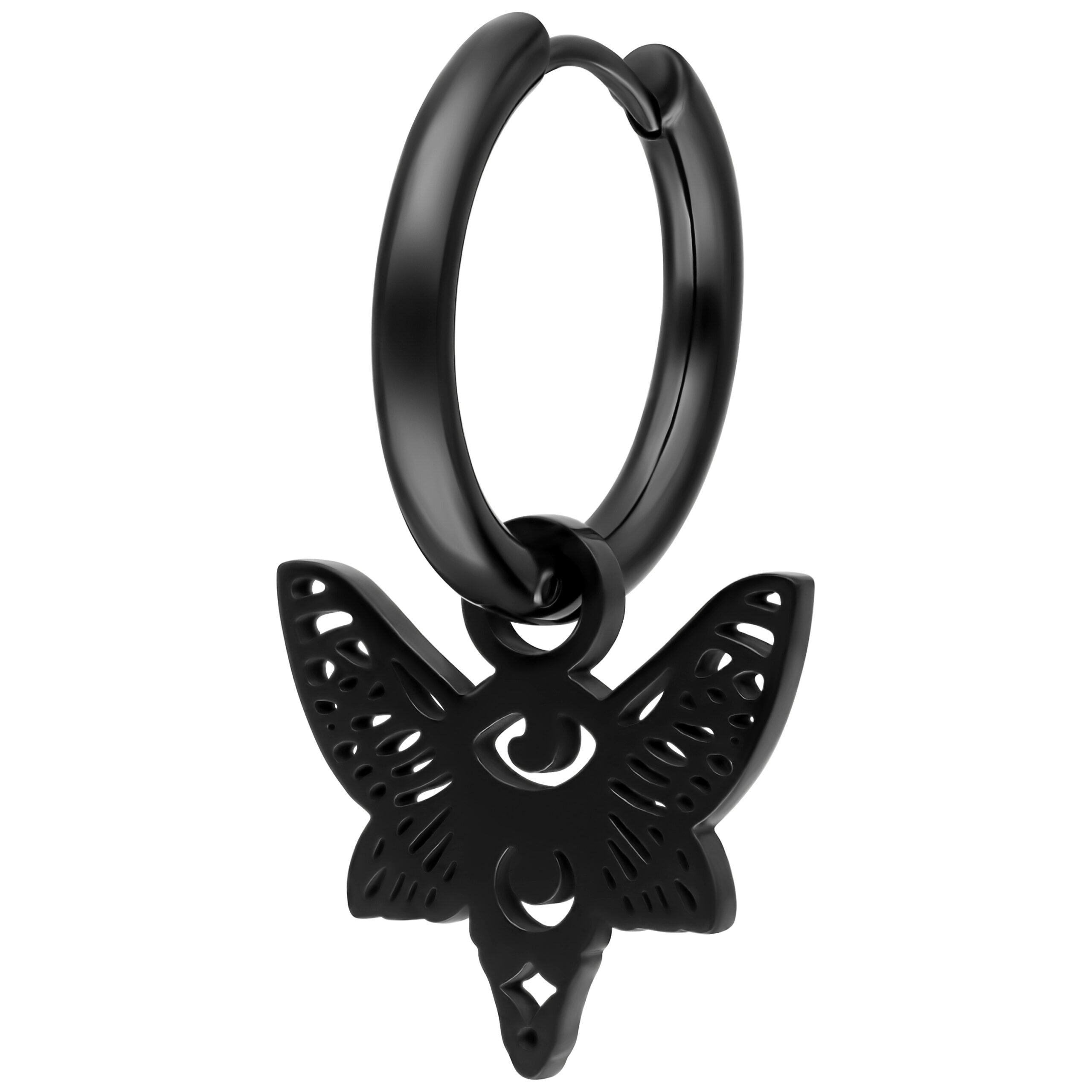 Our “Ear-Catchers”: Little Clip Creoles with Charms!nnWe have the absolute trend jewellery for you. These little creoles come with a cool upgrade, since the creoles possess beautiful charm hangers that can be easily fitted into the ring-shaped earrings. In that way, you can embellish your outfit by adapting your ear jewellery. Whether rocky, mystic, classic, bohemian or elegant, there is something for everyone. Get your favourites and score in all aspects!nnLittle tip: You can wear these wonderful creoles also with your tunnels. nnThe inner diameter of the creoles itself is 19,5 mm. The thickness of the creoles is 2,5 mm while the small pin has a size of 1 mm. nMoth size: 18.0 x 17.0 mm