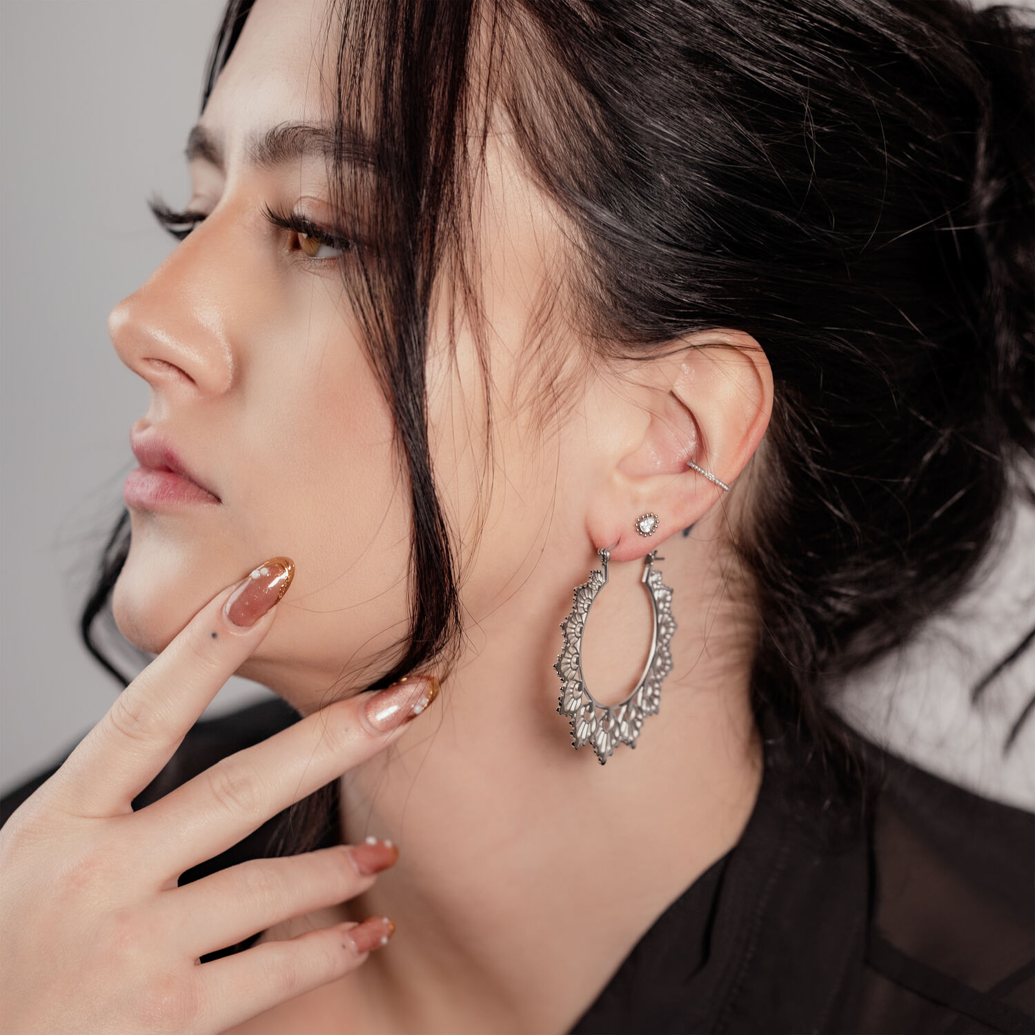 The Sunflower Hoops made of surgical steel 316L feature a radiant sunflower design that adds a fresh and cheerful touch to any look. The detailed floral motif combines playful lightness with modern elegance, creating a balanced and eye-catching style that feels both feminine and timeless.