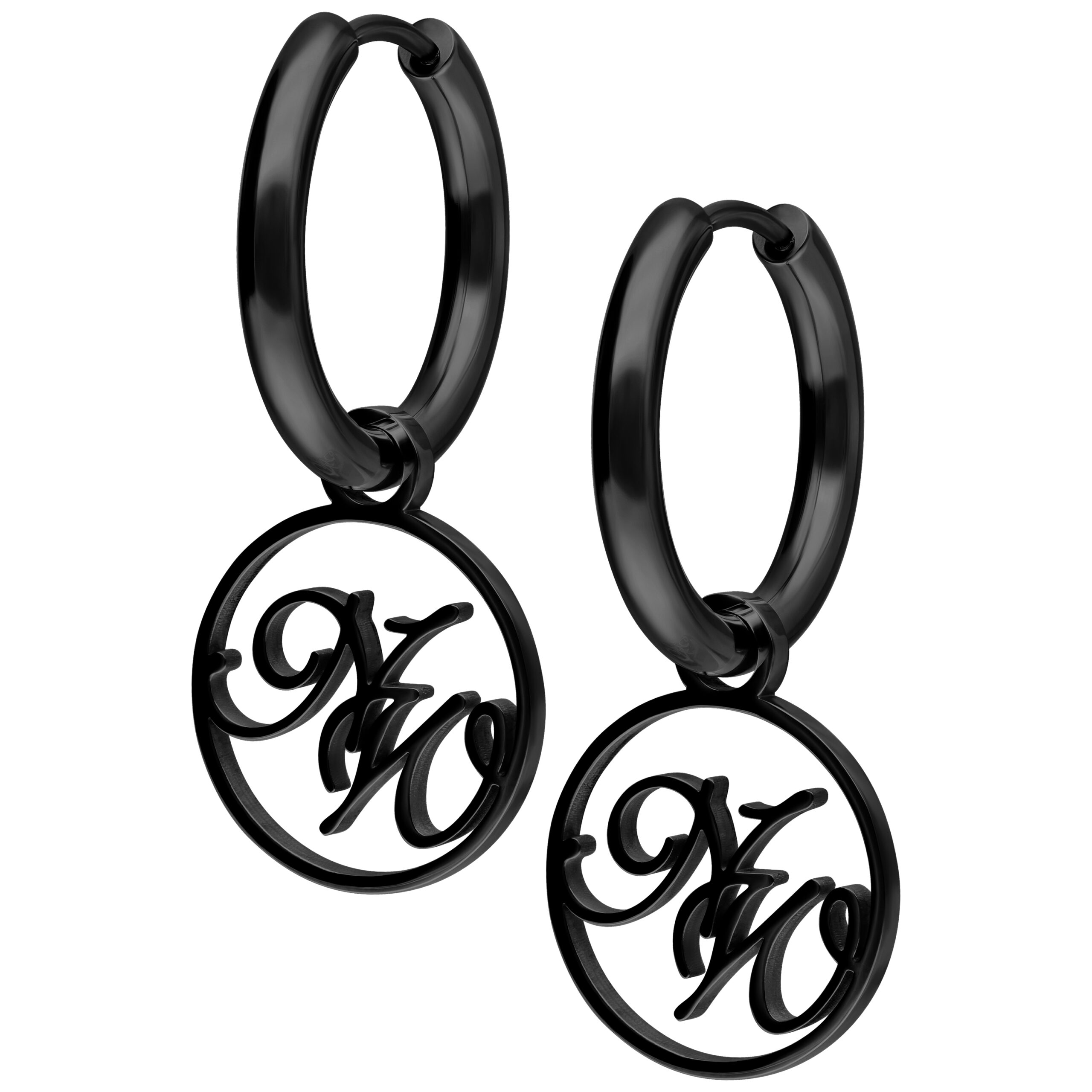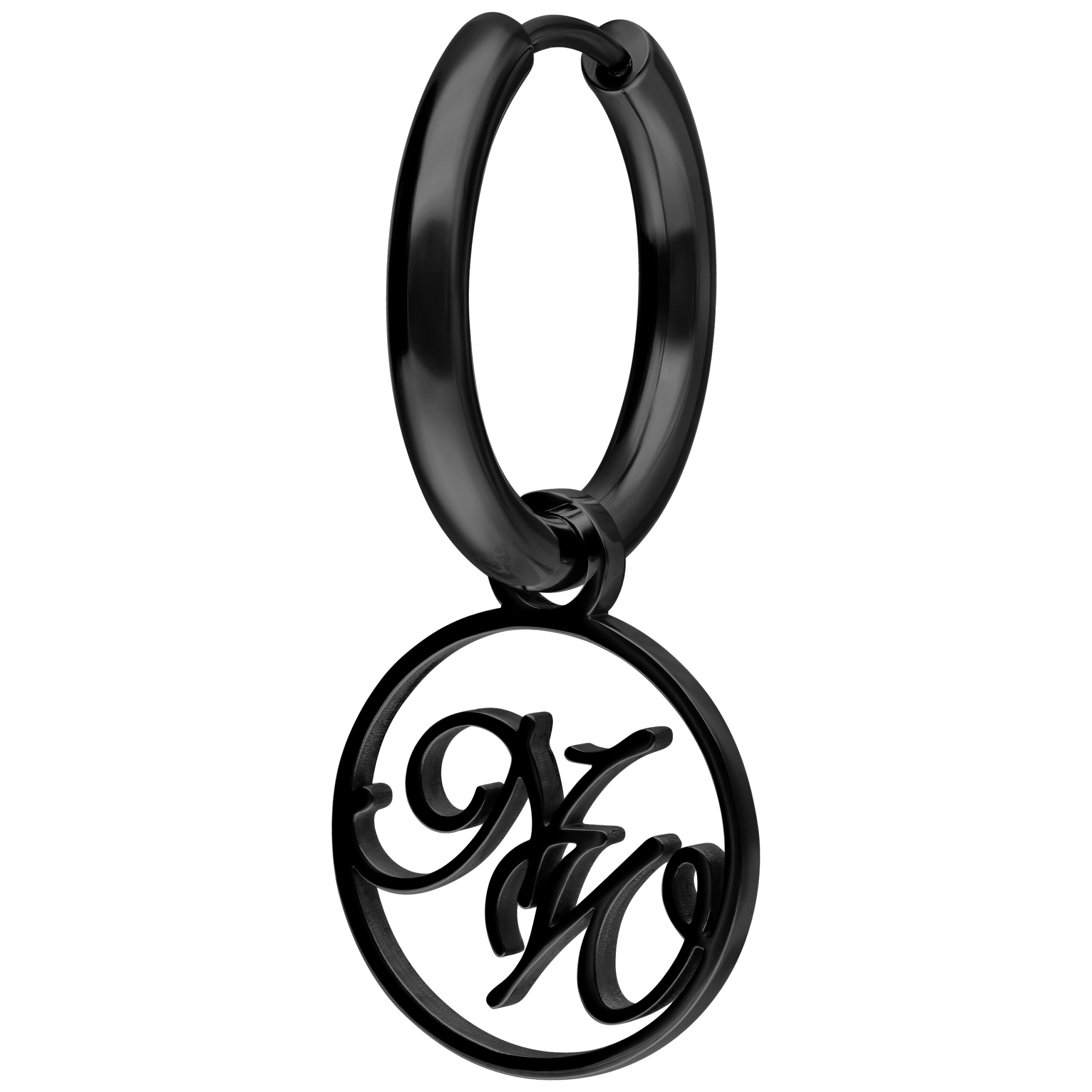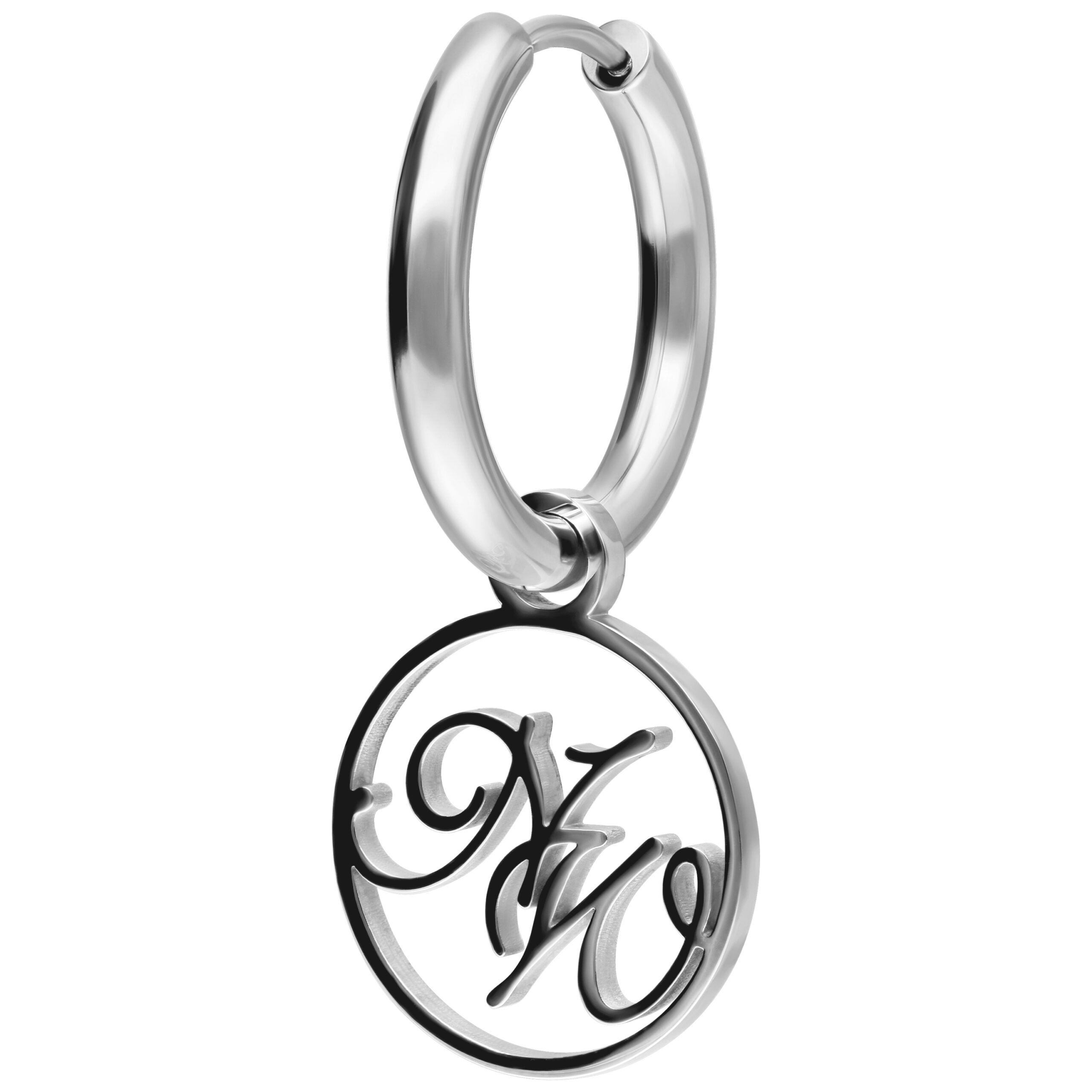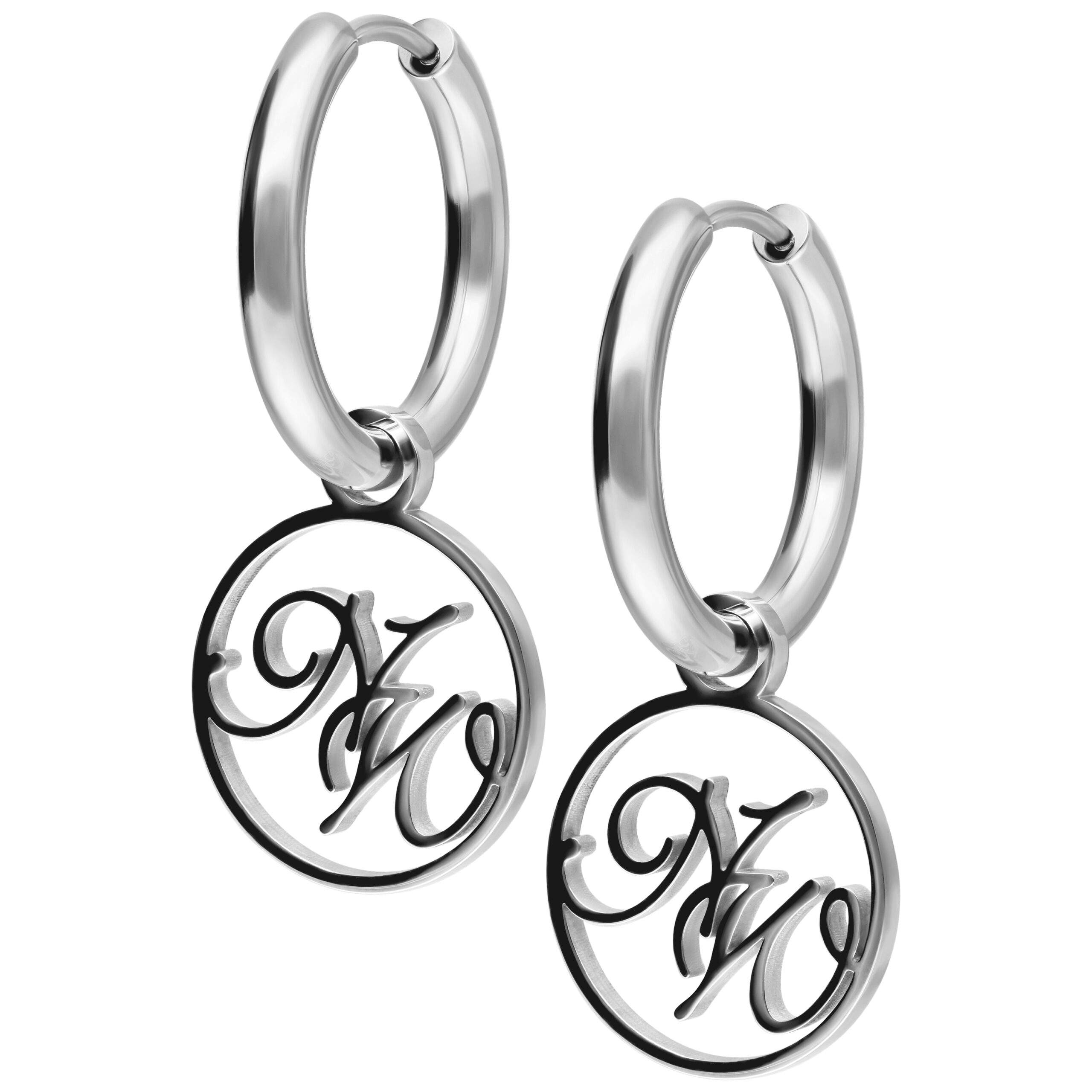 Small Nightwish hoop earrings with a pendant with through cut NW logo.