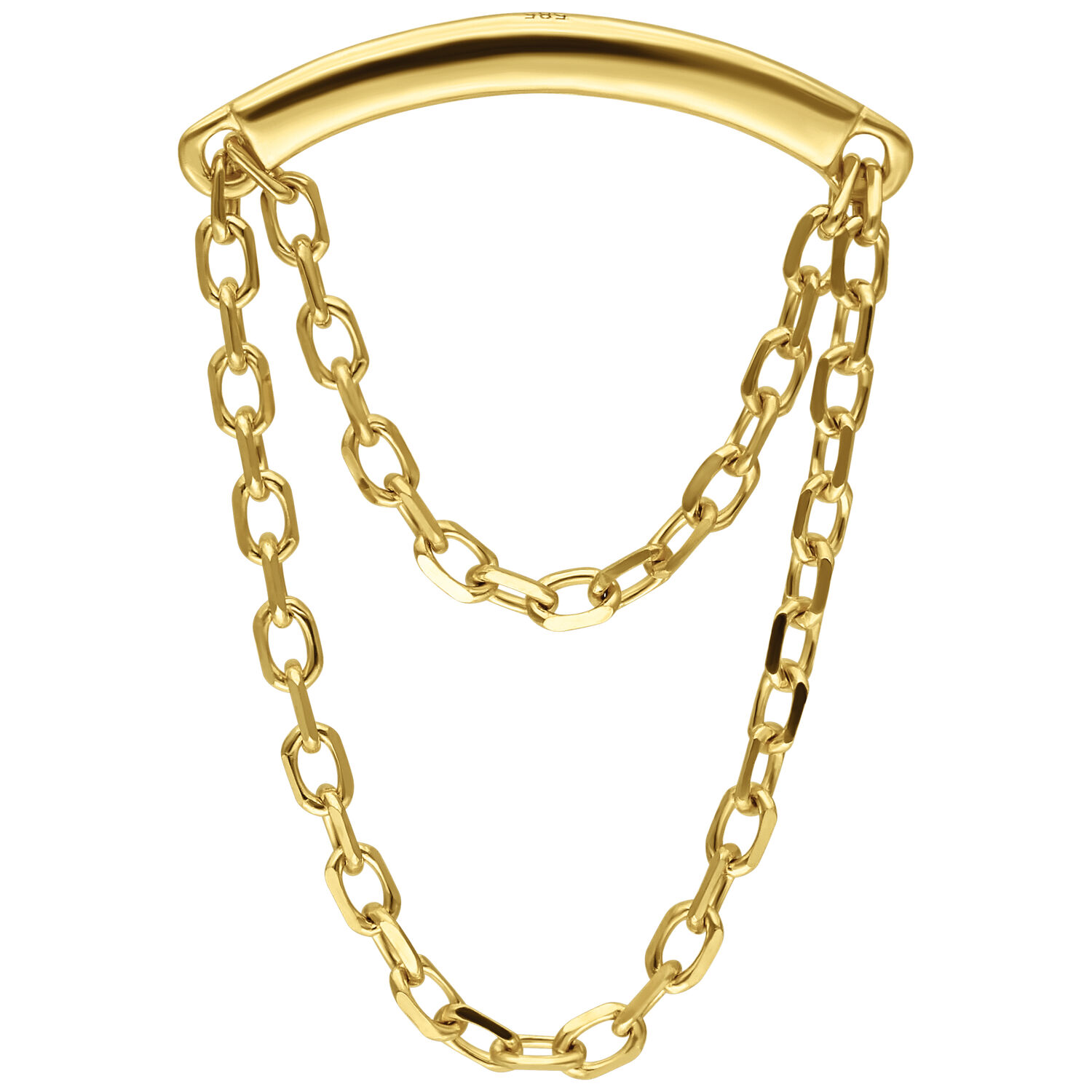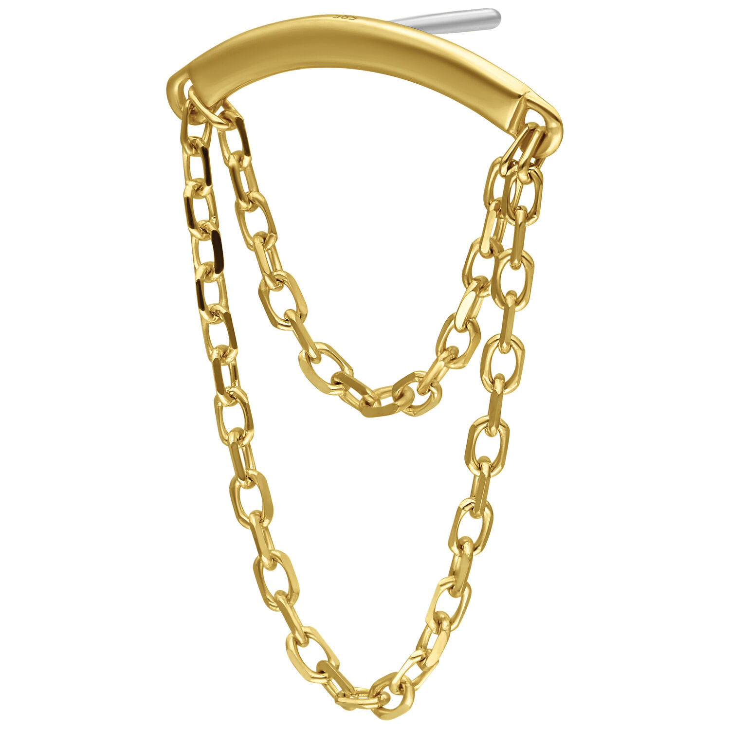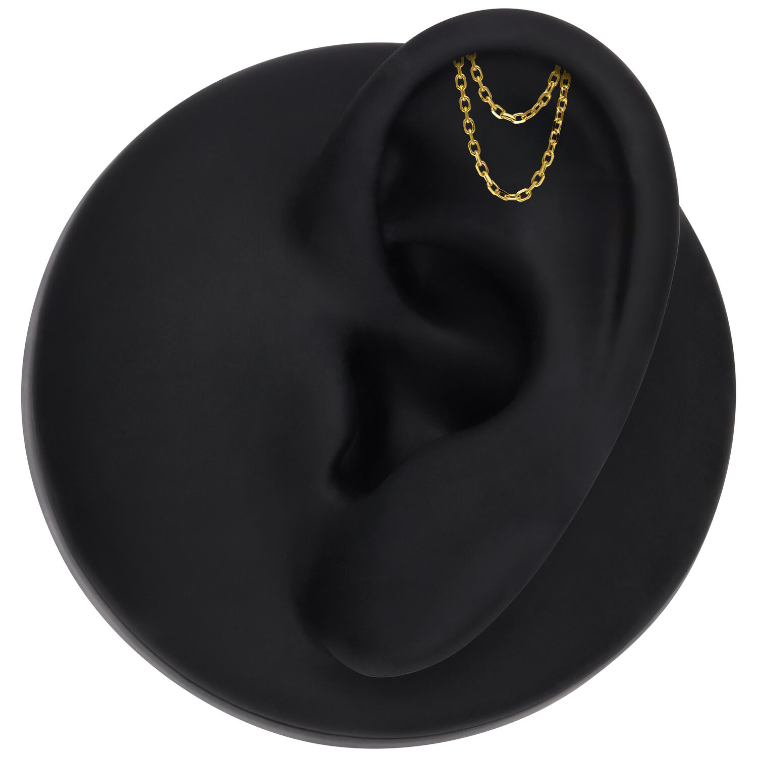 Luxury meets subtlety – the Hidden Helix Chain Attachment is crafted from genuine 14K gold and designed exclusively for the hidden helix piercing. A delicate dangling chain drapes elegantly along the ear’s contour, creating a refined, fluid movement that catches the light with every turn.