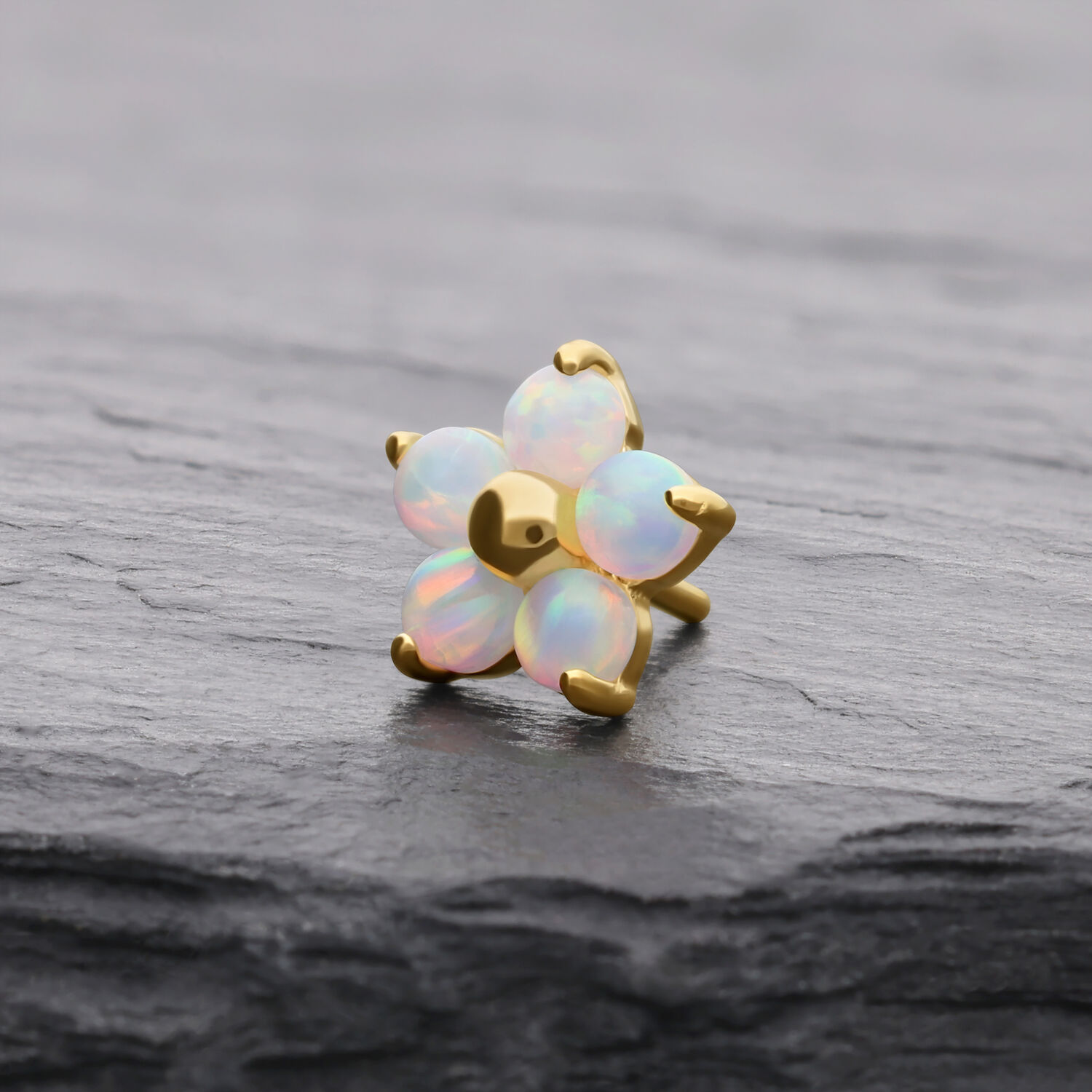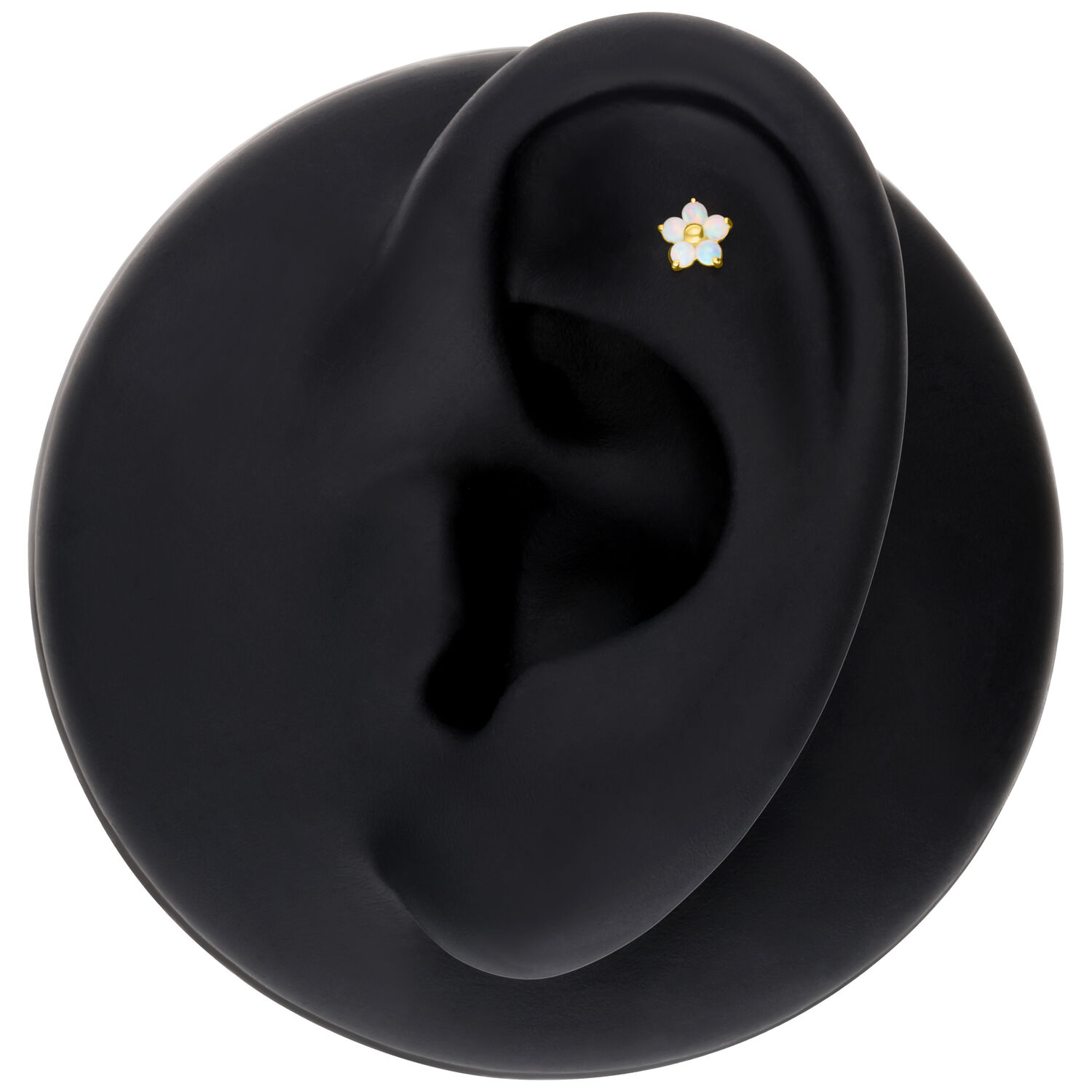 Luxurious 14K Yellow Gold Piercing – Perfect Fit Flower Opal Attachment
