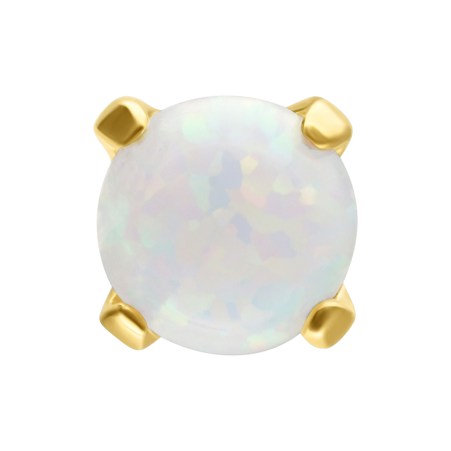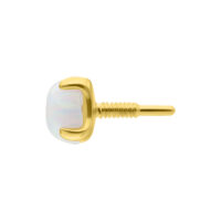 The Round Opal Attachment from our Wildcat Collection combines refined 14 karat (585) yellow gold with a shimmering, synthetic, round opal. Specifically designed for the Perfect Fit Labret (14K), this piece showcases minimalist elegance and the mesmerizing play of color unique to opals. Measuring 3 mm in diameter and weighing just 0.07 g, it’s ideal for those who appreciate subtle, high-quality piercing jewelry.
