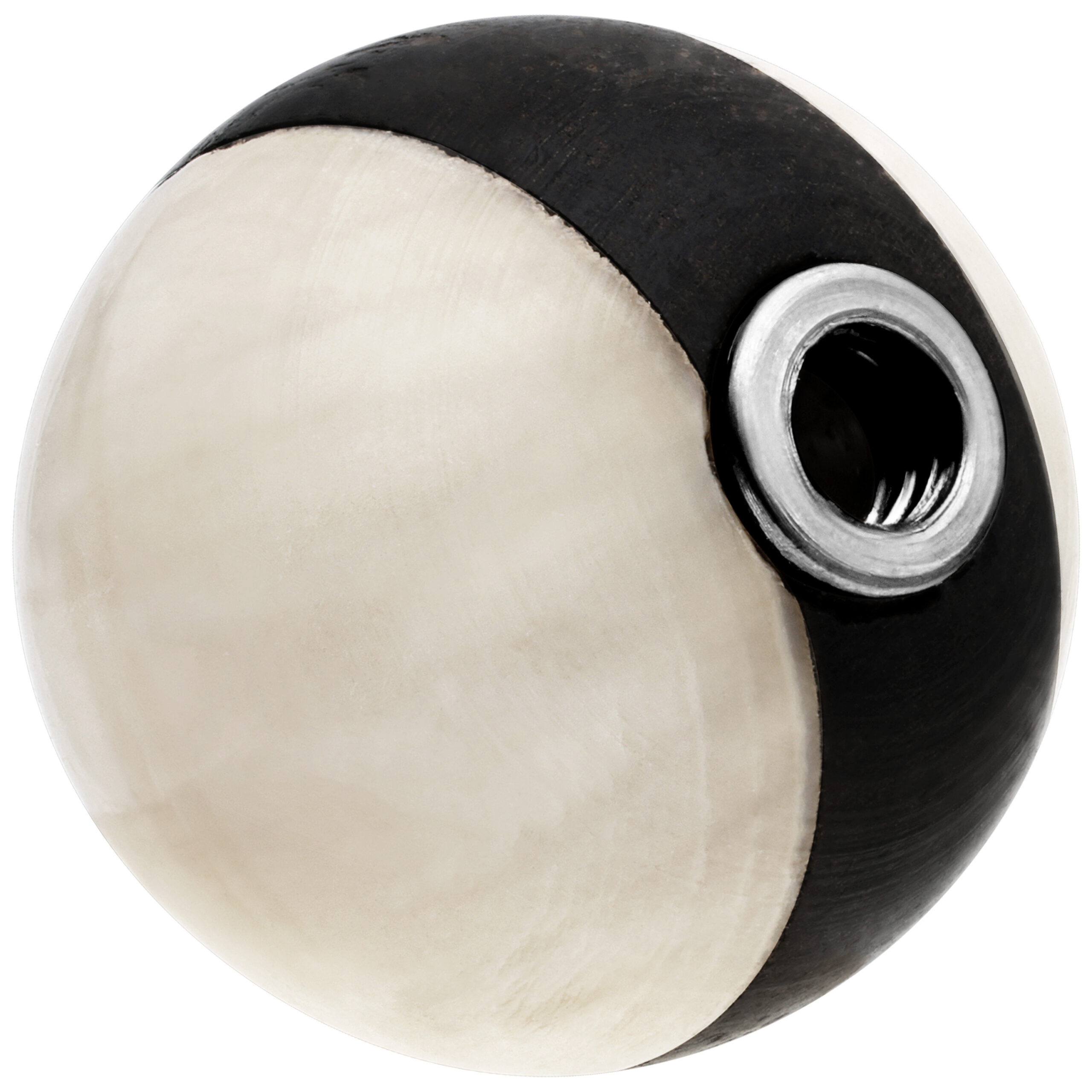This Ebony & Ivory Screw On Ball is a threaded ball for externally threaded jewellery. It is made of ebony wood and ivory. The ball is available with diameters of 6.0mm and 8.0mm.nnNatural materials like wood and ivory can change their look as normal environmental influences like light and water affect them. Differences in colour and texture are not avoidable and make every piece of jewellery uniquennThe ball can NOT be sterilised and is not appropriate for tongue or genital piercings. It is absolutely harmless if used as intended.nnIf there are any questions left, please do not hesitate to contact us, the employees of the Wildcat corporation will give you advice!