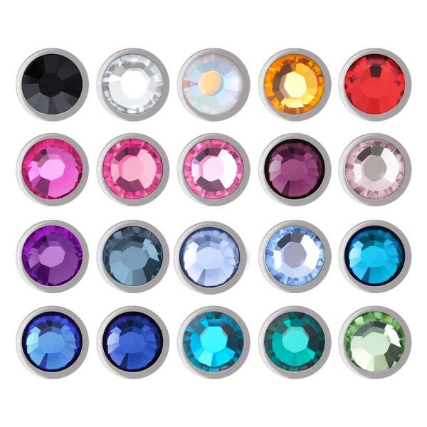 Crystal colour: Amethyst, Aurora Boreale, Black, Capriblue, Dark Blue, Emerald Green, Fuchsia, Hellsaphir, Lavender, Light Blue, Light Green, Montana, Pink, Purple, Red, Rosa, Sapphire Blue, White, Yellow, Zirkonblau
