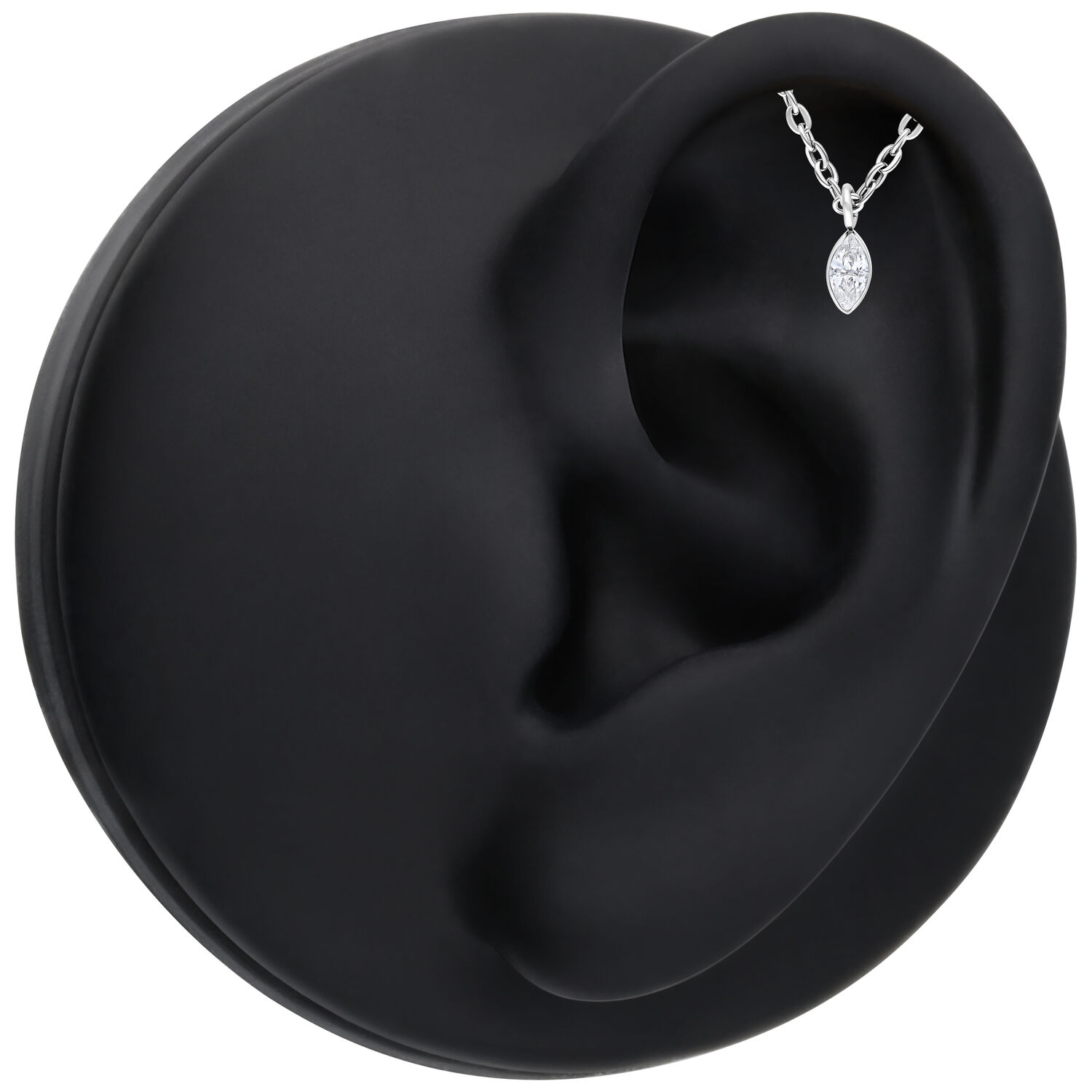 With this attachment, cool, high-quality titanium meets innovative design. This attachment is perfect for your very special helix. The curved bar hides perfectly in the crease of your ear so that only the fine chain is visible, giving your look an elegant and very special flair.