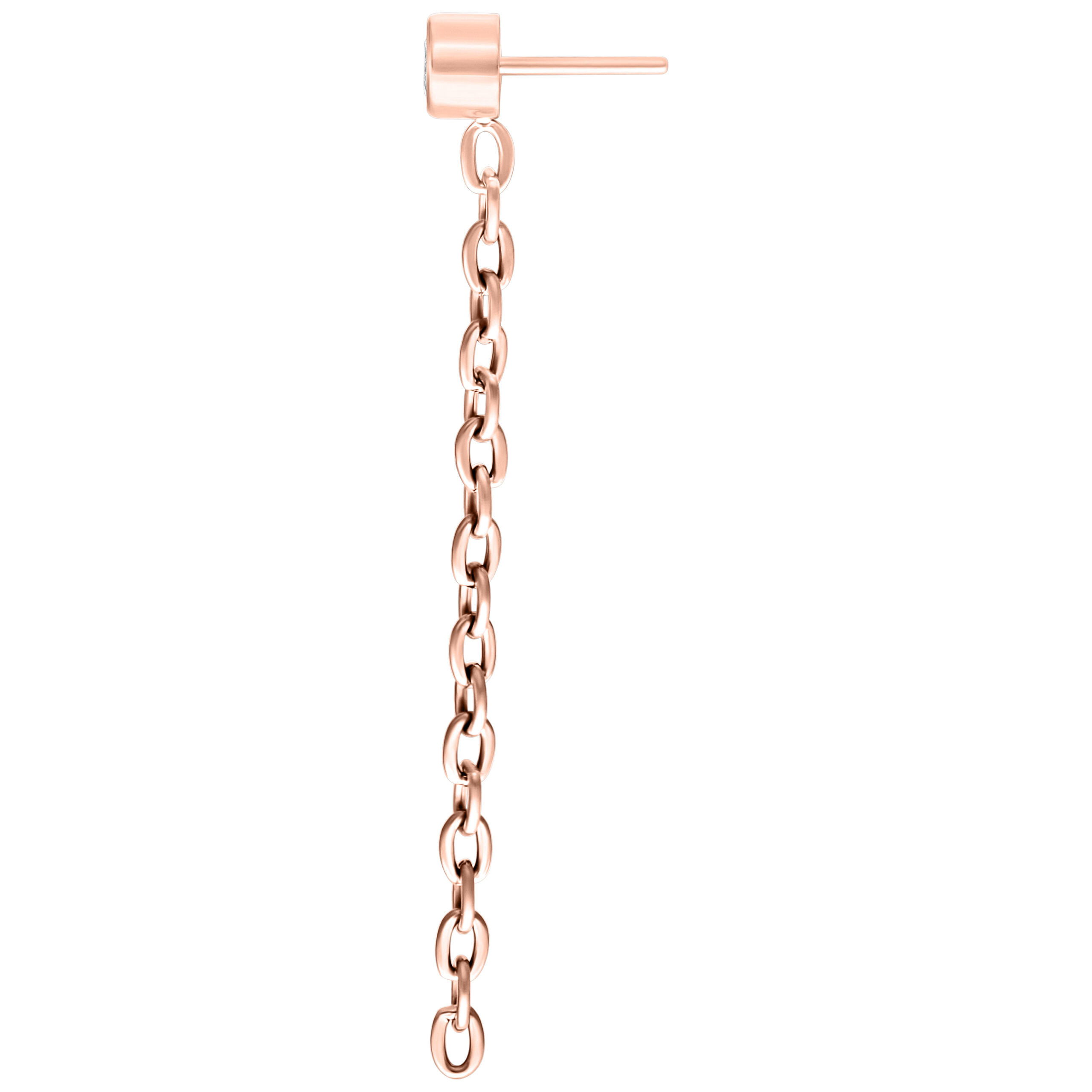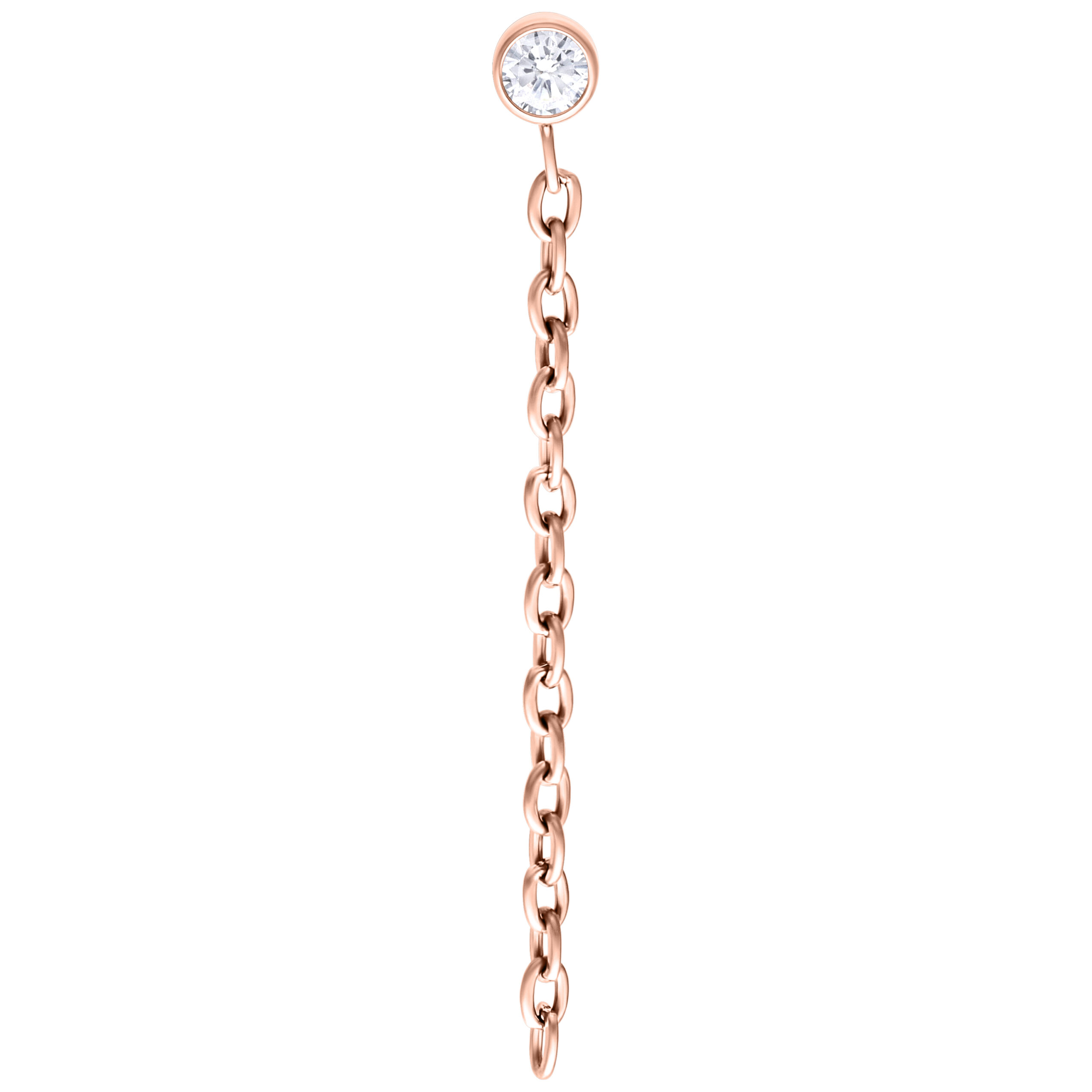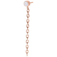 Are you looking for a touch of sparkle and attitude? Our Push Fit Attachment with a shimmering crystal and cascading chains is a statement piece that immediately catches the eye. The fine chains hang elegantly from your ear, adding an edgy yet playful touch to the piercing. It’s a perfect expression of individuality and style.