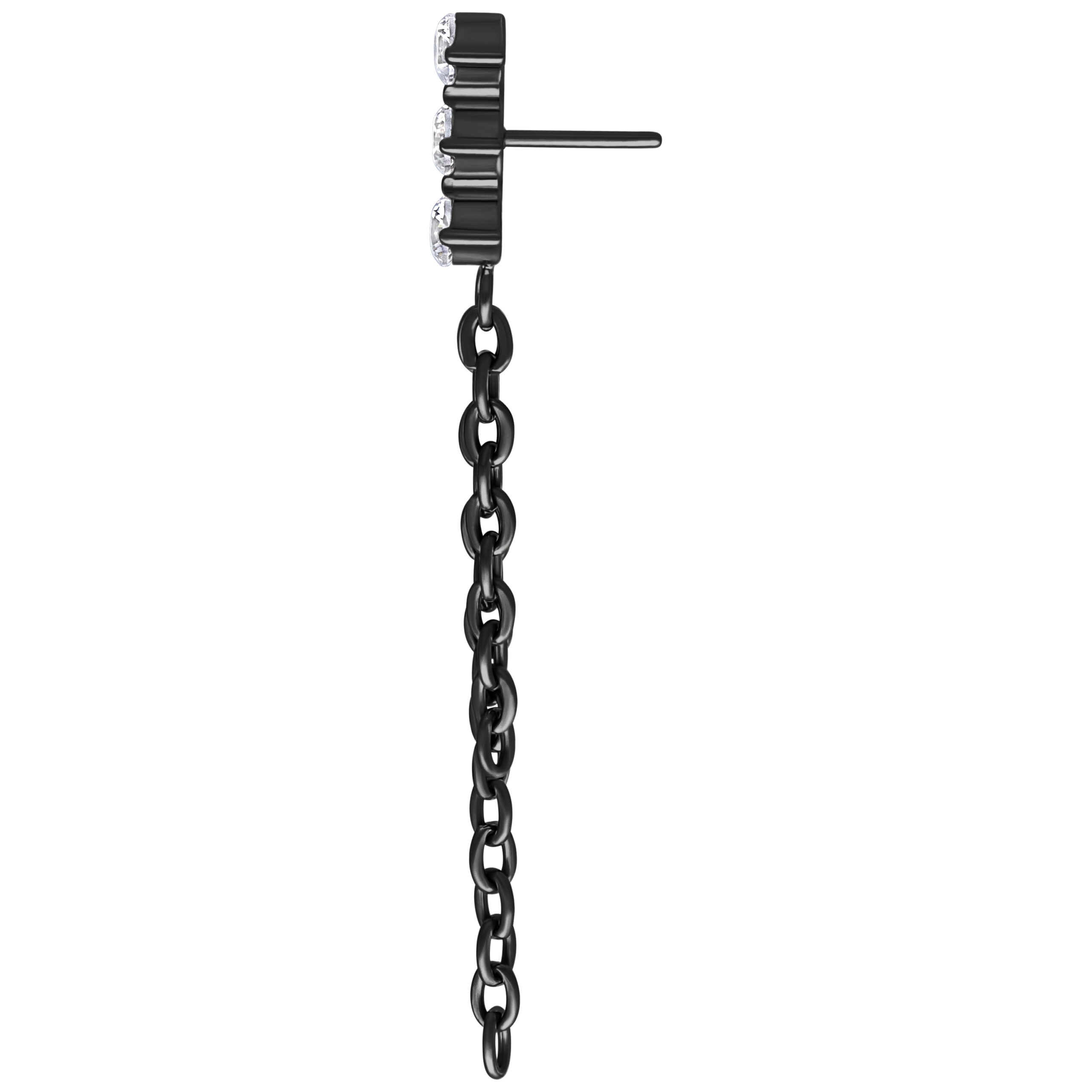 Are you looking for a touch of sparkle and attitude? Our Push Fit Attachment with sparkling crystals and fine chains is a statement piece that instantly catches the eye. The delicate chains elegantly hang from your ear, adding an edgy yet playful touch to this piercing. It’s a perfect expression of individuality and style.