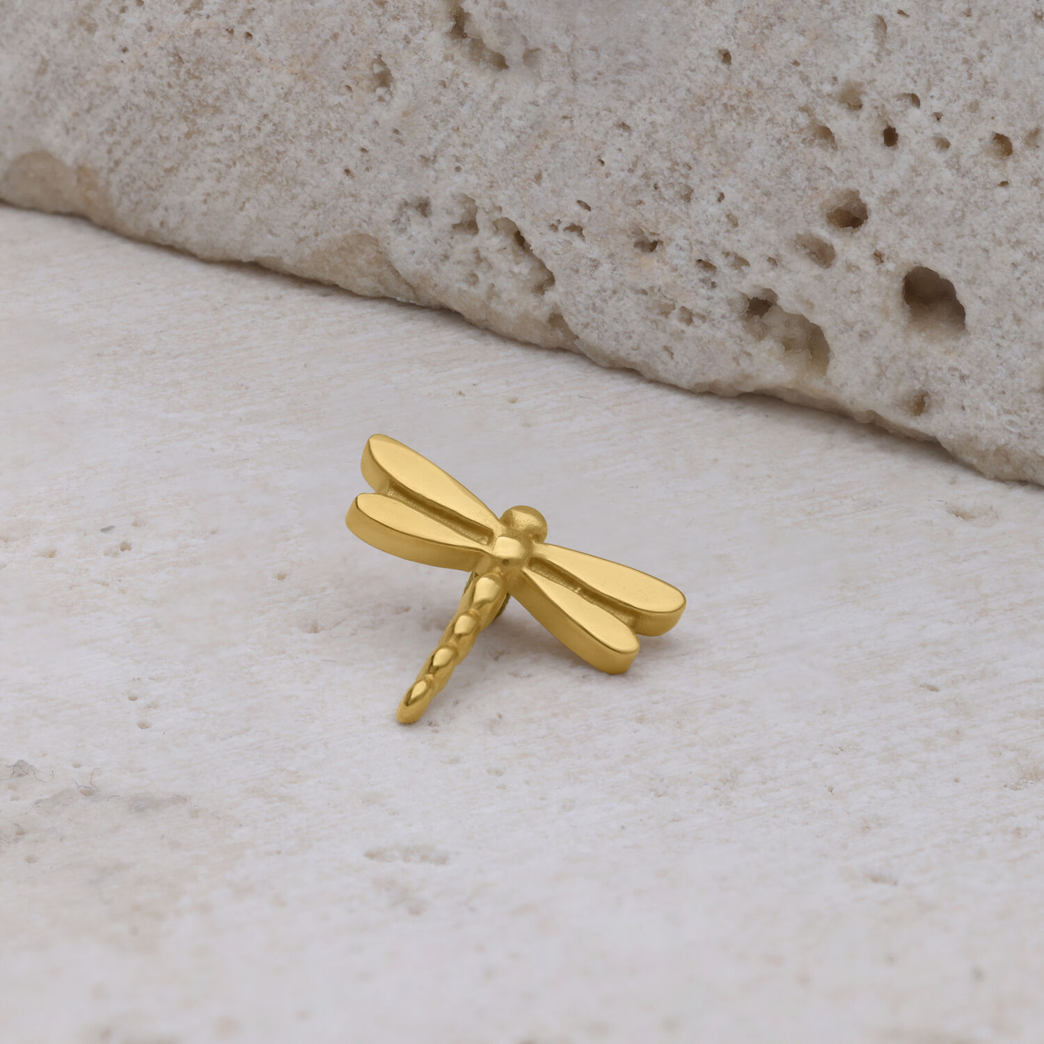 Our Dragonfly Push Fit Attachment combines delicate elegance with uncompromising quality. Made from implant-grade titanium (Ti6AL4V ELI ASTM F-136) and finished with a premium PVD coating, it is highly biocompatible, colorfast, waterproof, and durable. The graceful dragonfly represents freedom, transformation, and strength – a meaningful symbol that adds character to your piercing. With its precise craftsmanship and flawless surface, this attachment becomes a subtle yet striking eye-catcher.