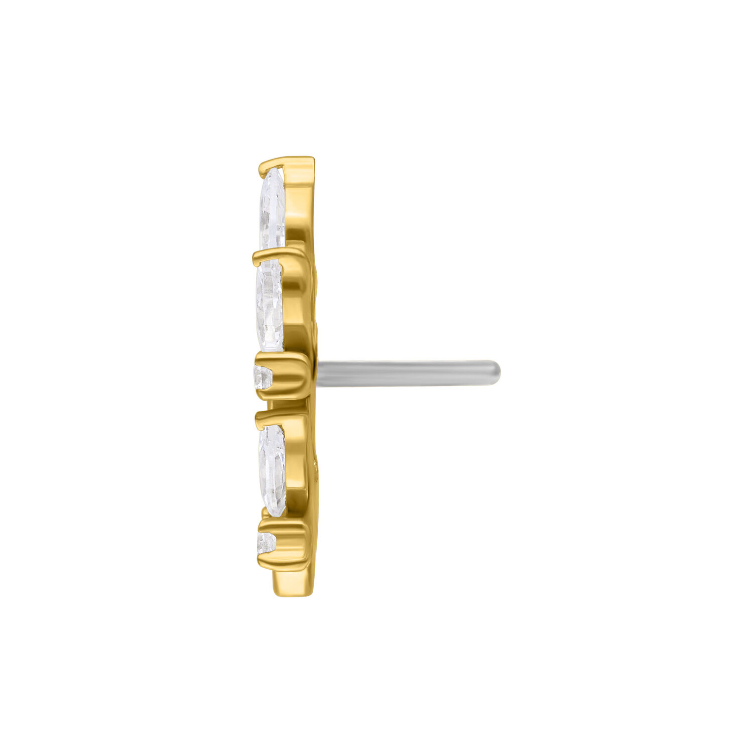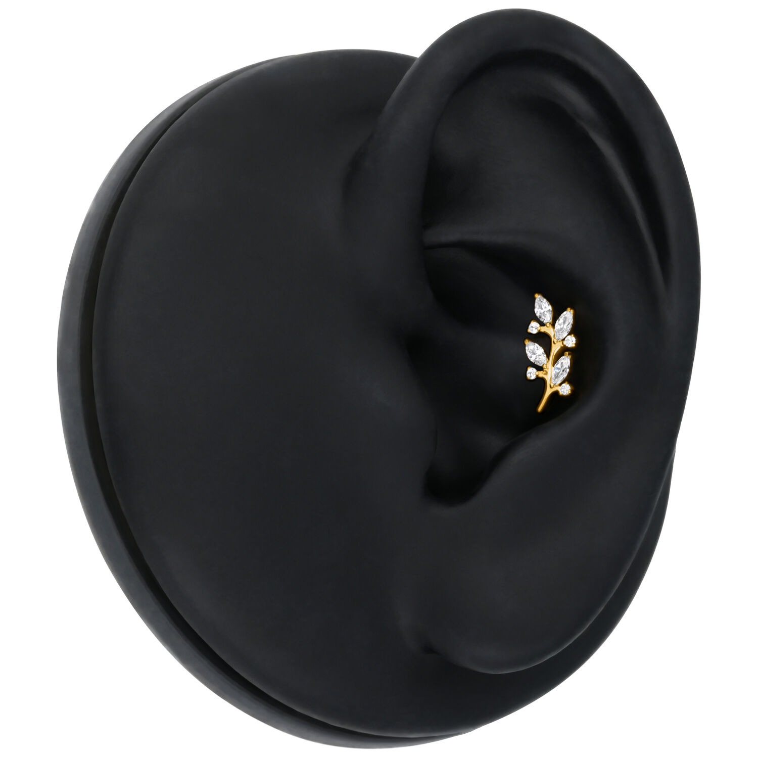 Thanks to the push-fit system, the attachment can be inserted effortlessly and sits securely without threading. Ideal for helix, conch, flat or lobe placements, where the curved shape is beautifully showcased.