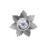 The Riffled Winter Jasmine attachment brings soft winter romance to your piercing. Its refined, rippled jasmine flower design catches the light beautifully, creating a subtle frosted sparkle. Crafted from premium Grade 23 titanium (G23), it offers excellent biocompatibility and daily-wear comfort.