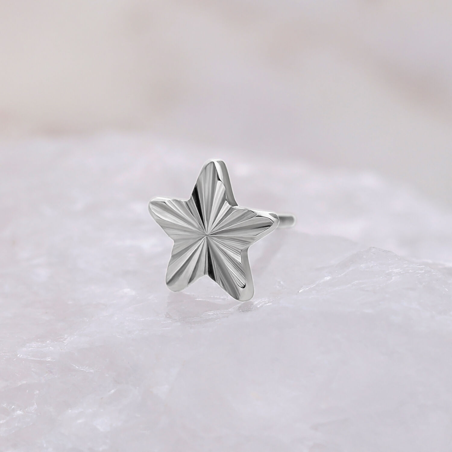 The Riffled Winter Star attachment adds a refined winter sparkle to your piercing. Its delicately rippled star design catches the light beautifully, creating a subtle, icy shimmer. Crafted from premium Grade 23 titanium (G23), it ensures excellent biocompatibility and everyday comfort.