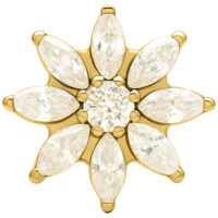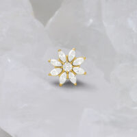 The Winter Crystal Ice Flower attachment adds a bright, frozen sparkle to your piercing. Its delicate floral shape paired with shimmering crystals evokes the look of frosted petals, catching the light beautifully. Crafted from premium Grade 23 titanium (G23), it ensures excellent biocompatibility and long-lasting comfort.