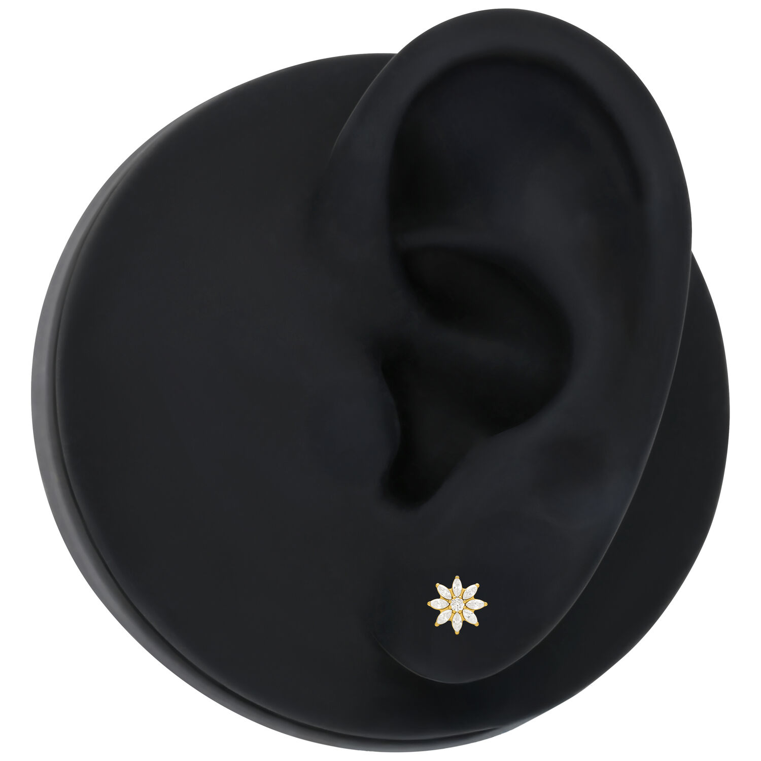With its secure push-fit mechanism, the Ice Flower attachment is easy to insert and stays firmly in place. Perfect for helix, lobe, and conch piercings – a refined winter-inspired detail that shines all year long.