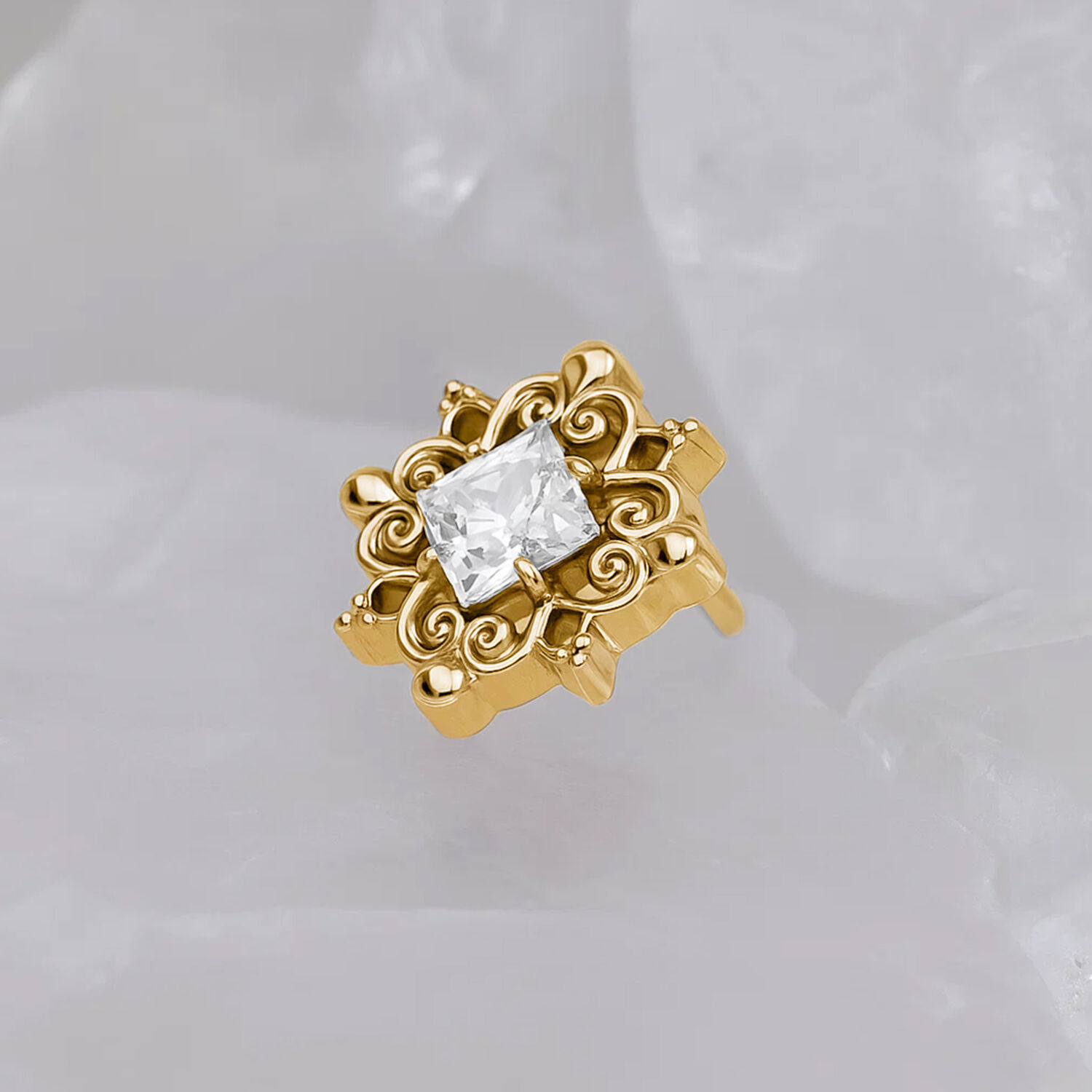 Perfect for helix, lobe, conch, and Medusa piercings – an elegant frosted detail that enhances your look throughout the winter season and beyond.