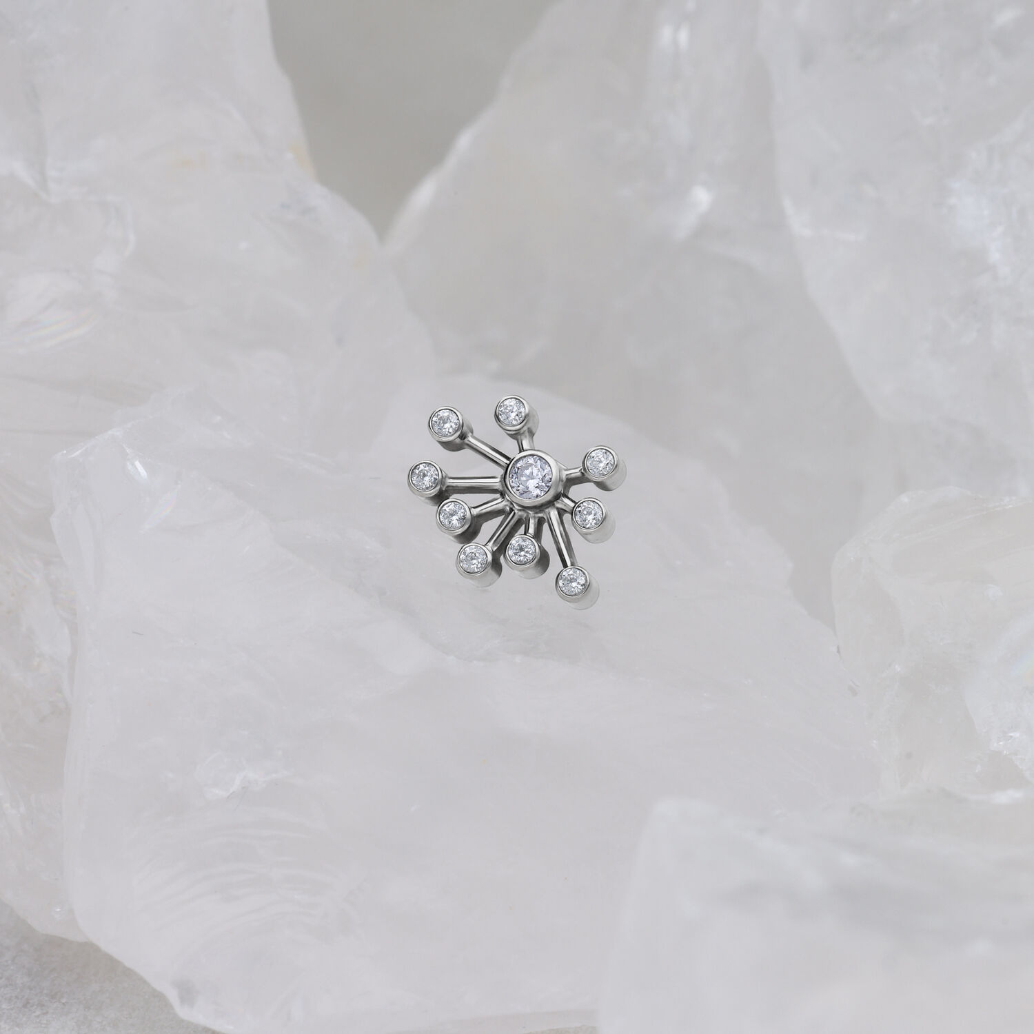 The Winter Frozen Sparkle attachment adds a bright, frosty shimmer to your piercing. Its finely cut crystals resemble frozen ice shards, reflecting the light beautifully for a vibrant winter sparkle. Elegant yet timeless, this design brings a touch of frosted magic to your everyday style.