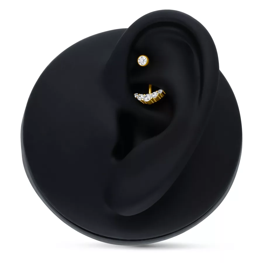 Furthermore, the high gold content ensures excellent skin compatibility, durability, and colorfastness. The Micro Bananabell looks very elegant and luxurious and will perfectly accentuate your rook piercing or eyebrow!