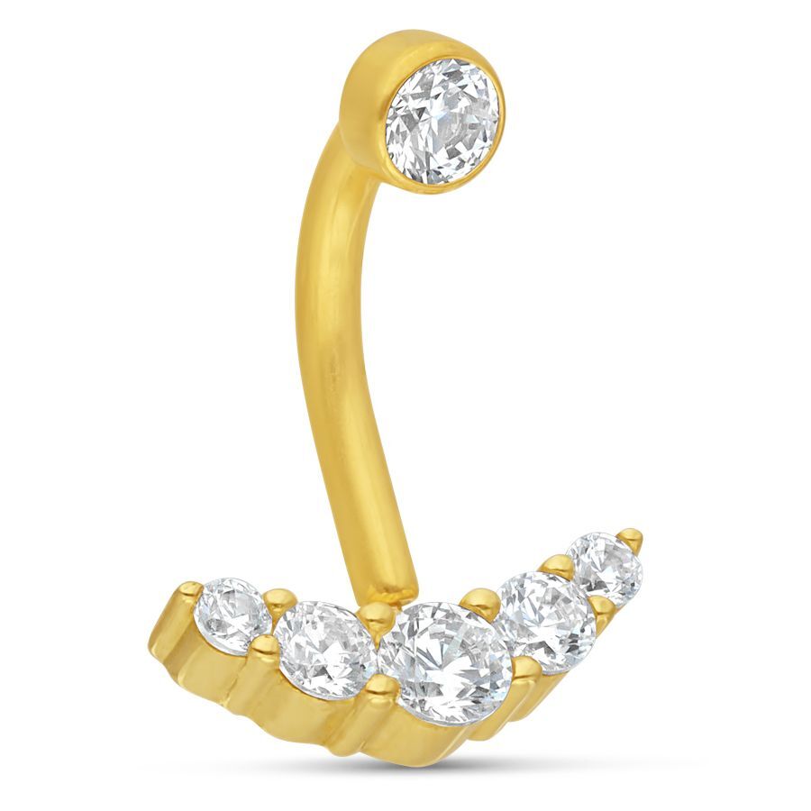 18k Gold Belly Bar Five Diamonte Crystals