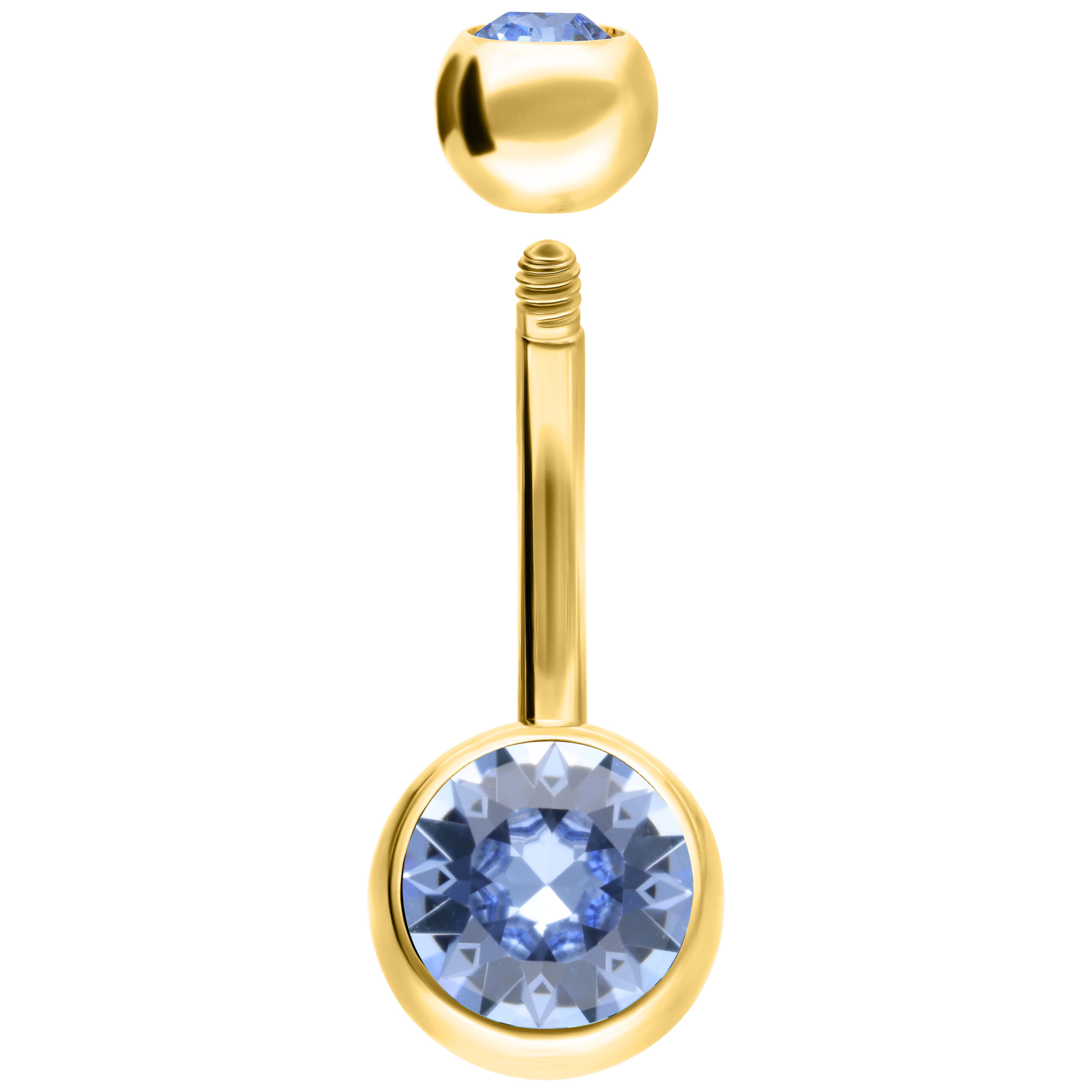 The slightly curved bar is externally threaded. The spheres can be screwed onto the external threads of our externally threaded bananabells. Incidentally, all threads in our jewellery collections are standardised so that you can combine the rings, baubles, rods and attachments in 1.6 mm with each other! You can find the replacement spheres without crystal that match the Bananabell in the Titan Zirconline® under the item designation GTB, and the spheres with crystal under GJS.
