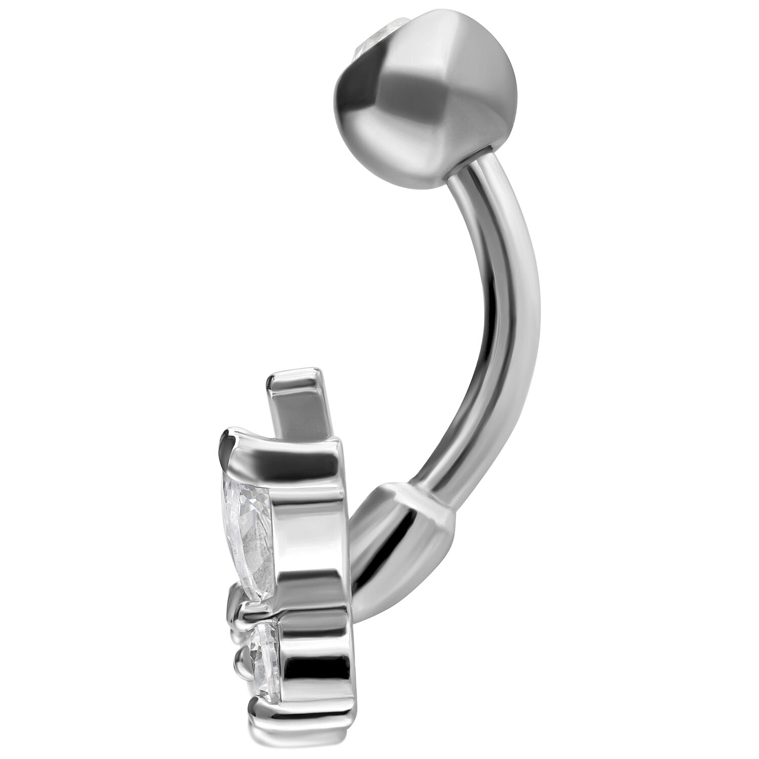 Available in silver and gold surgical steel with crystal-clear gemstones. The bar is externally threaded.