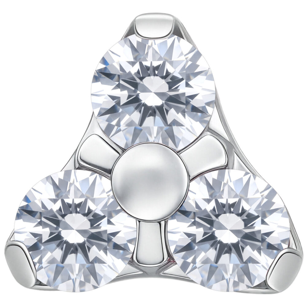 The BYCG attachment has an external thread with a thread thickness of 0.8 mm and therefore fits perfectly on an internally threaded labret with a thickness of 1.2 mm. It is available in the crystal colours Crystal Clear, Fancy Champagne, Fancy Morganite and Greyish Blue.