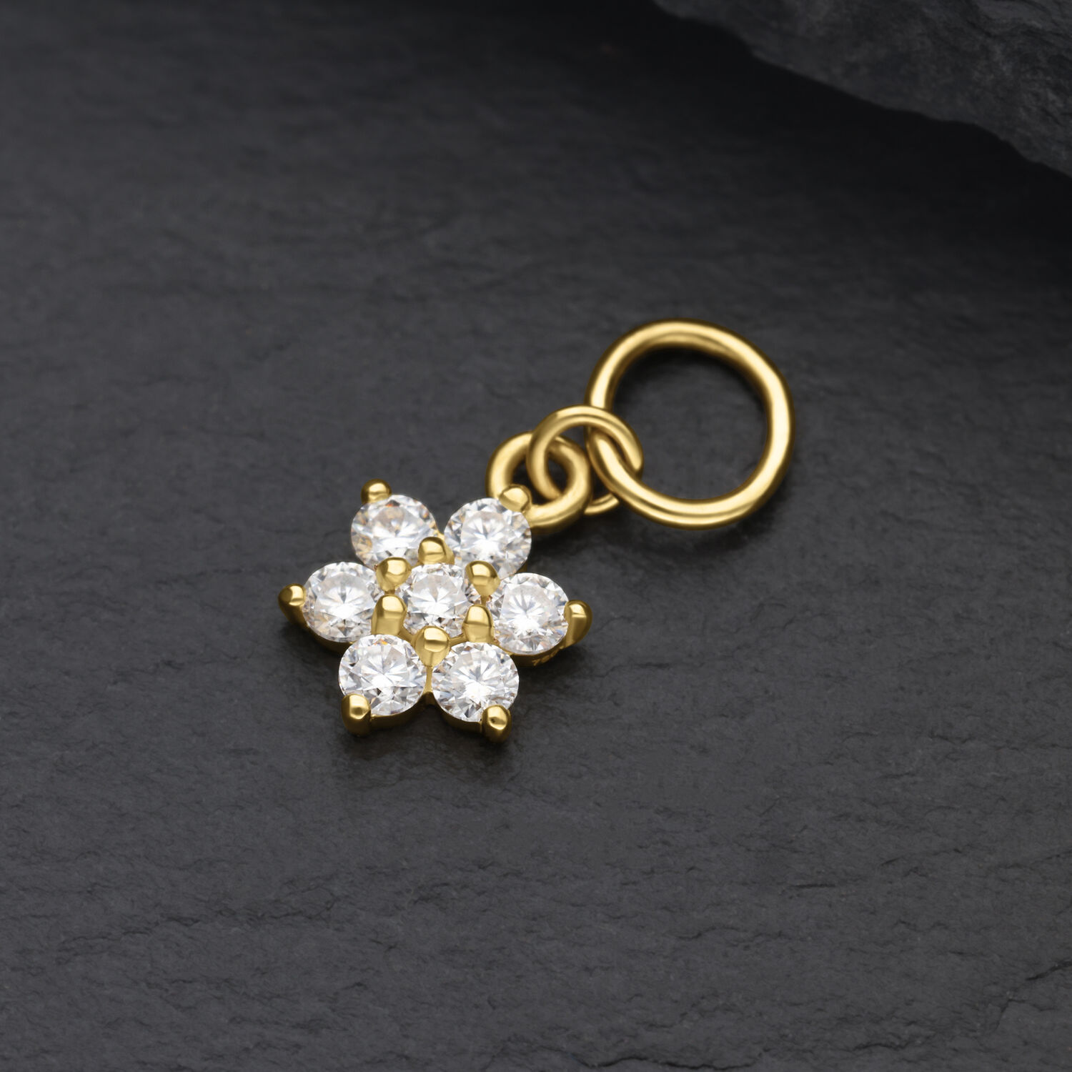 The 18K Moissanite Flower Pendant captures the essence of elegance and femininity. Crafted from polished 18 karat (750) yellow gold, this refined piercing pendant features a delicate flower design, symbolizing harmony, growth, and strength.