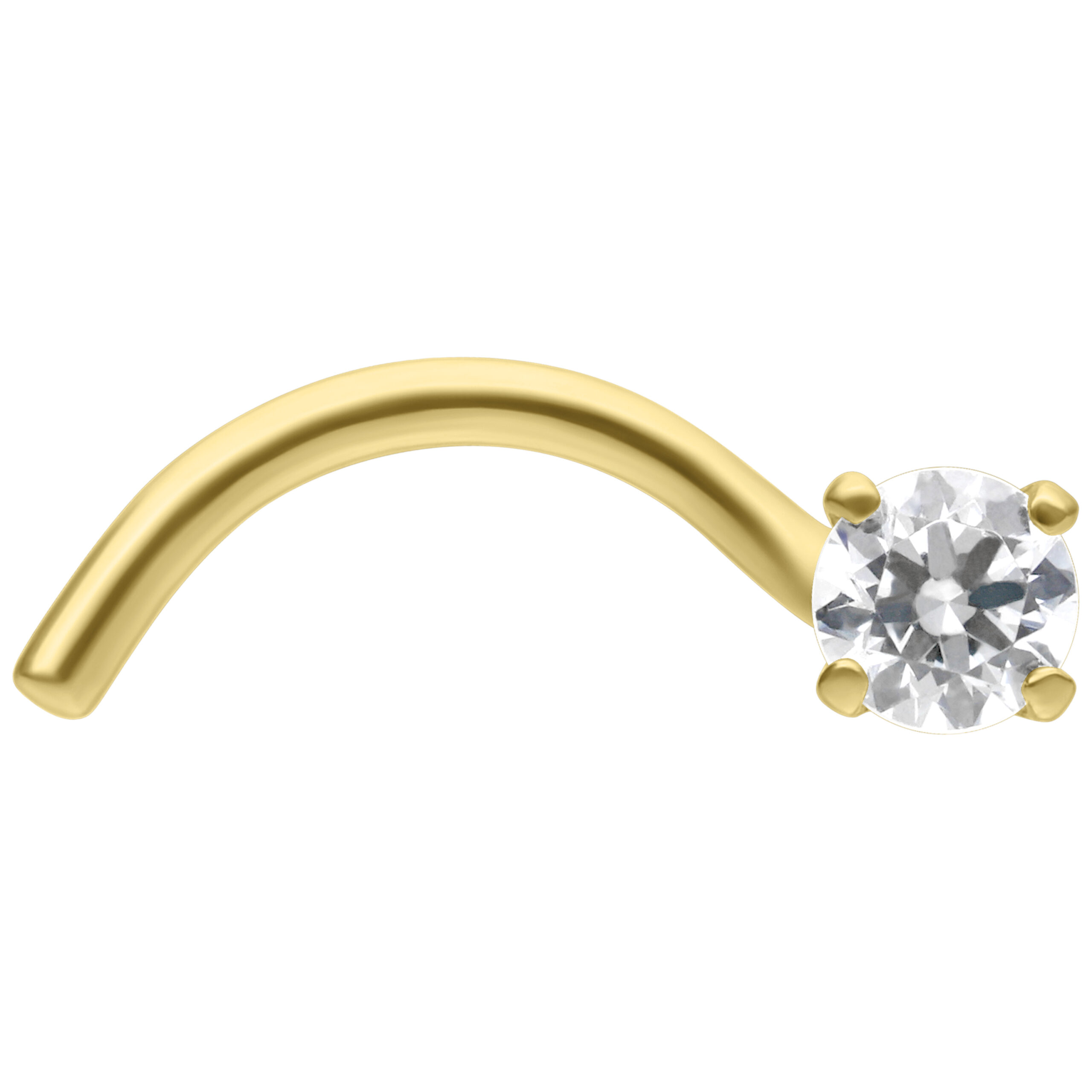 This exclusive 18-carat nose stud is crafted from the finest yellow gold. A beautiful, subtle stud for your nose that doesn’t appear too large, yet adds that certain something. Thanks to its curved tail, it stays firmly in place, but can also be easily removed without any trouble.