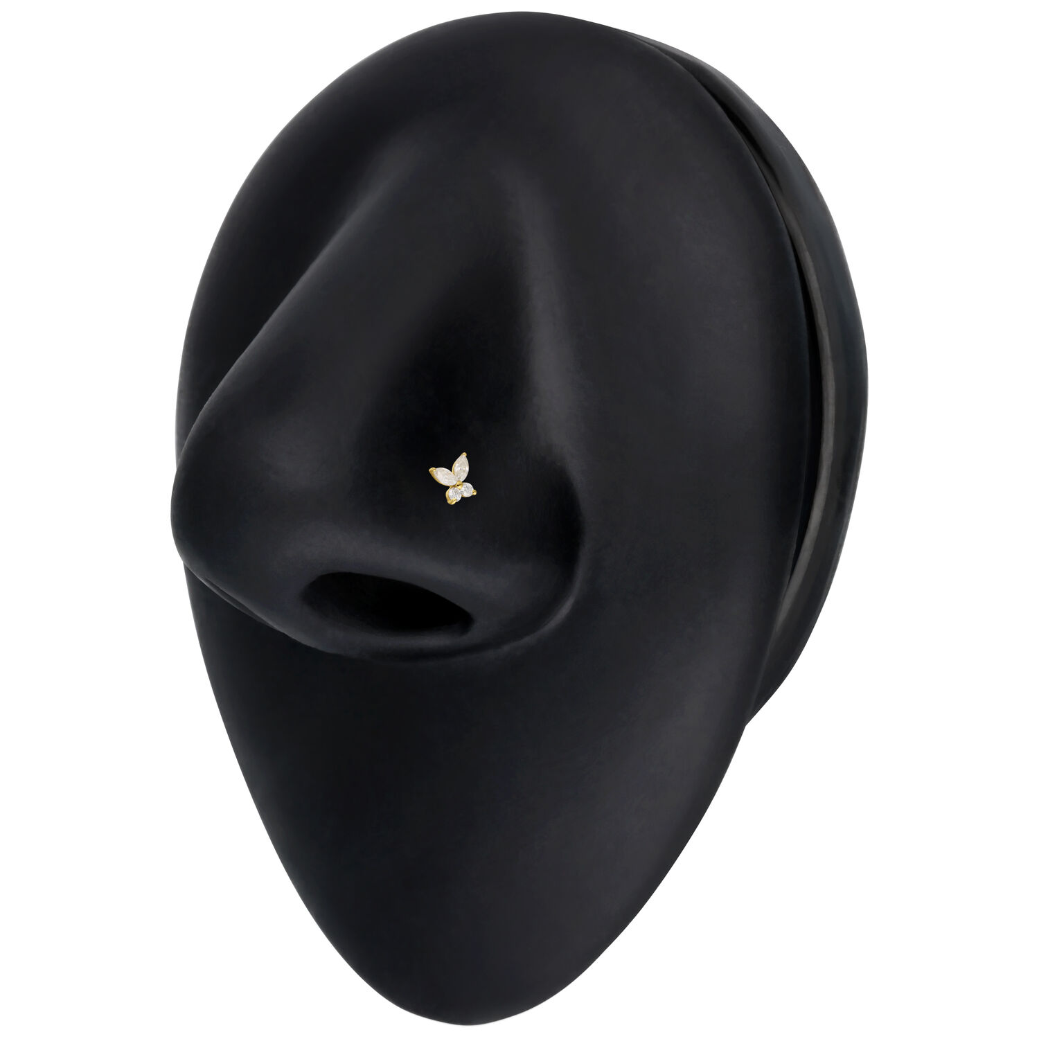 With a stem length of 5.0 mm and a thickness of 0.6 mm, the stud fits the nose discreetly without appearing too dominant. Thanks to the slightly curved tail, it sits securely and comfortably while still being easy to remove when desired.