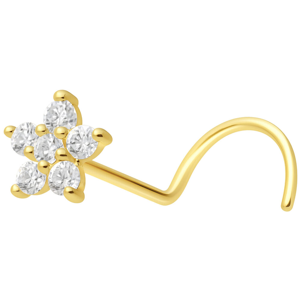 This elegant 18K Moissanite Flower Nose Stud is crafted from fine, polished 18-karat (750) yellow gold, combining premium materials with timeless elegance. The delicate flower design is adorned with a sparkling moissanite stone, radiating exceptional brilliance and refined beauty.