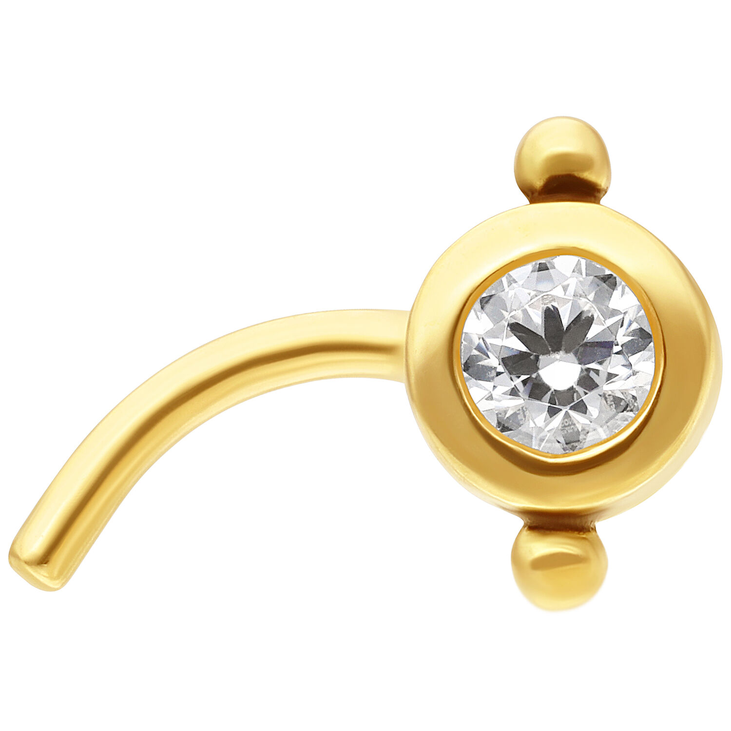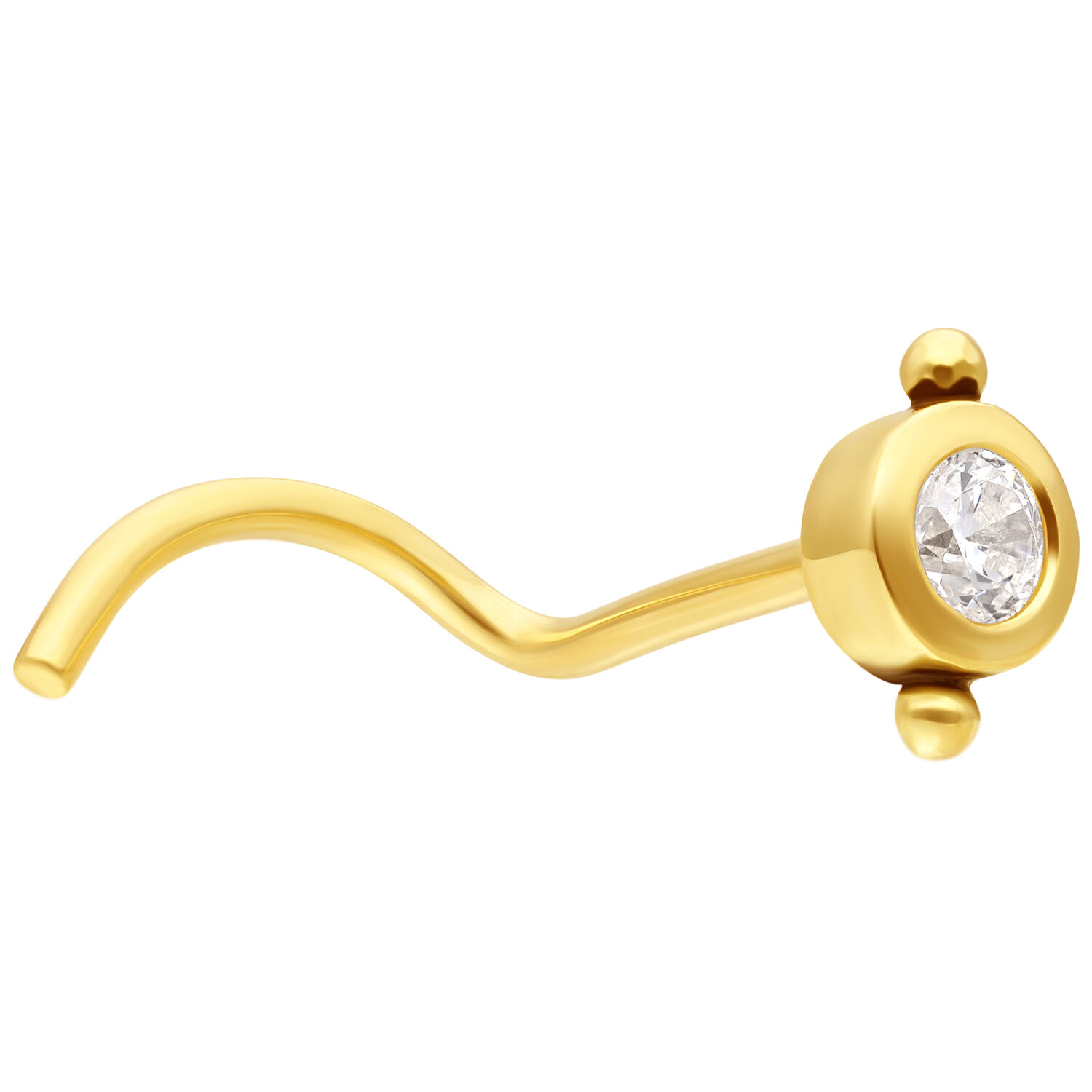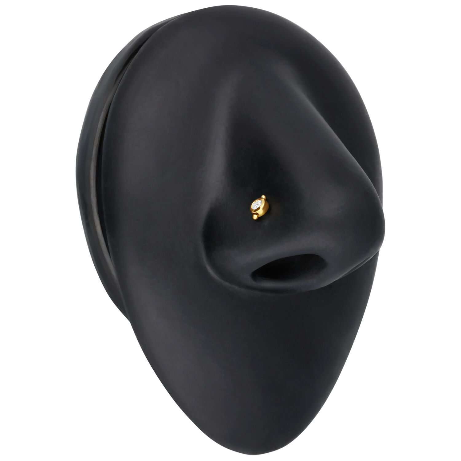 This exclusive 18-carat nose stud is crafted from the finest yellow gold. A beautiful, slightly playful piece for your nose that doesn’t appear too large, yet still adds that certain something. Thanks to its curved tail, it stays firmly in place but can also be easily removed.