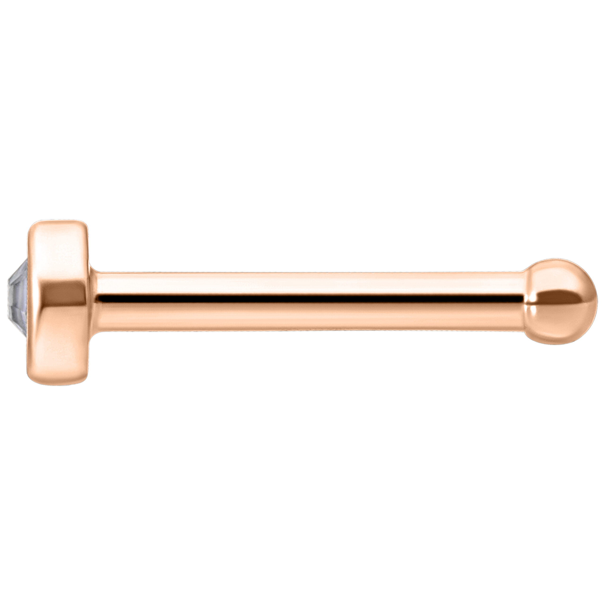 The Mini Jewelled Nostril Stud from the Titanium Rosegoldline is an inconspicuous and elegant stud for your nose. Its high-quality crystal provides sparkling highlights. Thanks to its ball stopper, it stays firmly in place, but can also be easily removed again.