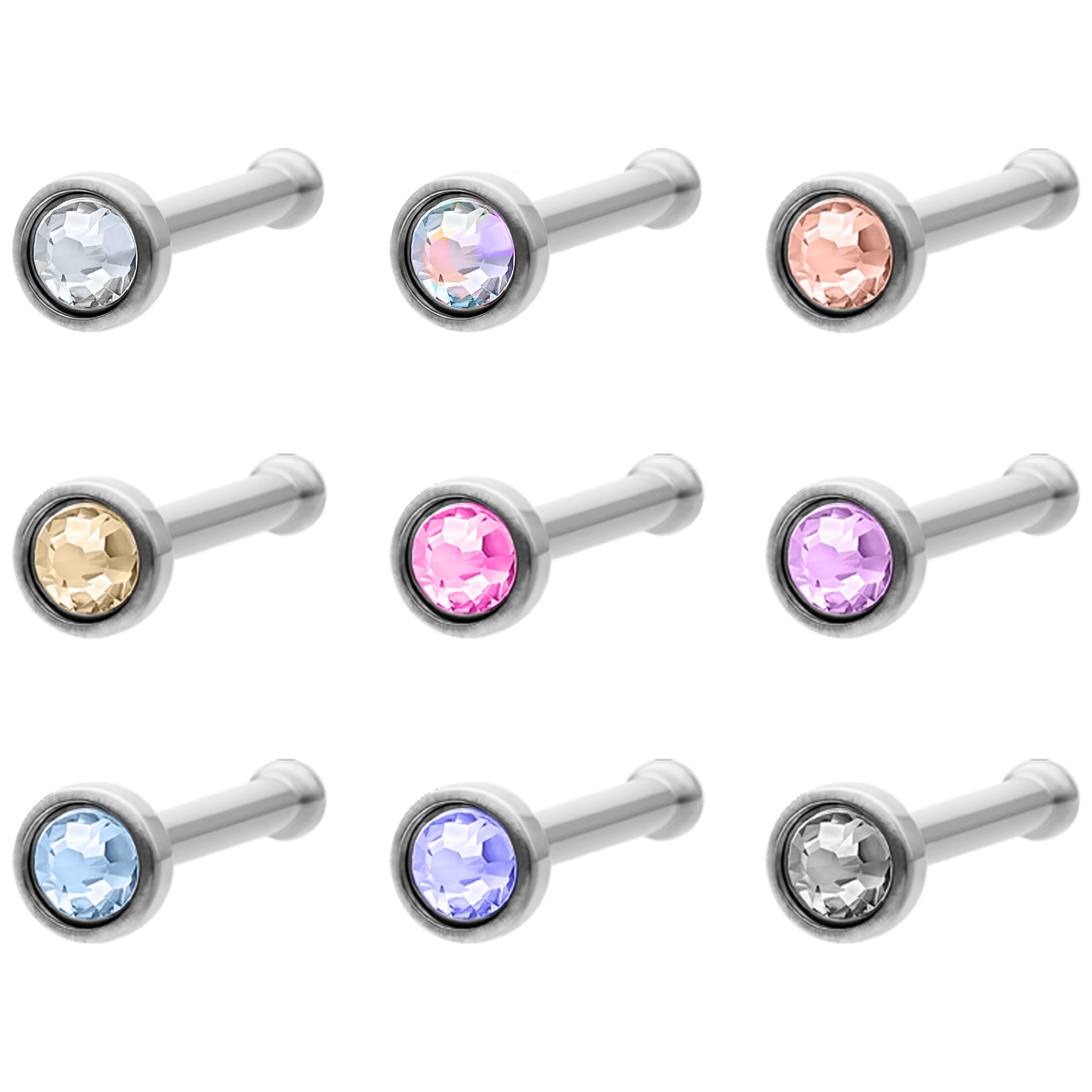 The Titan Highline®Mini Jewelled Nostril Stud is the inconspicuous but classy stud for your nose. Its 2.5 mm disc is beset with a premium processed rhinestone which creates twinkling highlights. The stud is available in a thickness of 0.9 mm, the stone can be chosen in different colours: aurora boreale (AB), amethyst (AM), crystal clear (CC), cobalt blue (CO), red (RE), sapphire blue (SB) and light blue (LB).