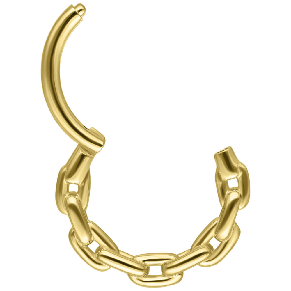 The 14K Chain Ring brings timeless elegance to your piercing collection. Made from solid 14 karat gold, this fine chain design wraps around your piercing with effortless sophistication – delicate, flexible, and full of shine.