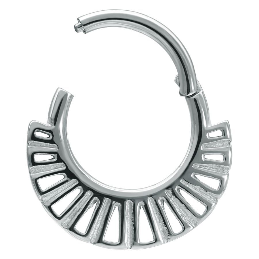 Our Ethno Septum Clicker is made of high quality stainless steel and is ideal for your septum piercing. The piercing has a curved hinge bar, which makes it easy for you to insert the piercing – and all that without any help!