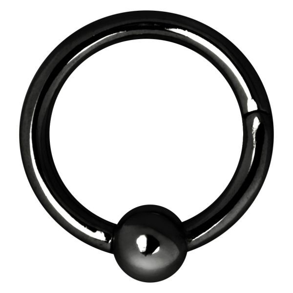 You constantly lose the closure plug-in of your segment ring and you are sometimes on the verge of a nervous breakdown? nnThen our cool Ball Closure Ring Clicker made of black-coloured steel is exactly the right thing for you! With this innovative click mechanism you do not need to spent hours on trying to insert your piercing jewellery. The ball serves as a closure, which is “clicked” into the indentation of the ring. Thus, you have a very simple handling, likewise it offers a high wearing comfort. An unbeatable price-performance ratio! The clip is not deforming an looks simply pretty. Due to the good quality, this article is also recommendable for allergy sufferers. nnThe hinged segment ring can optionally be used for different piercing areas such as for your tragus, helix, septum, your lips or ears and so on. You have the free choice!