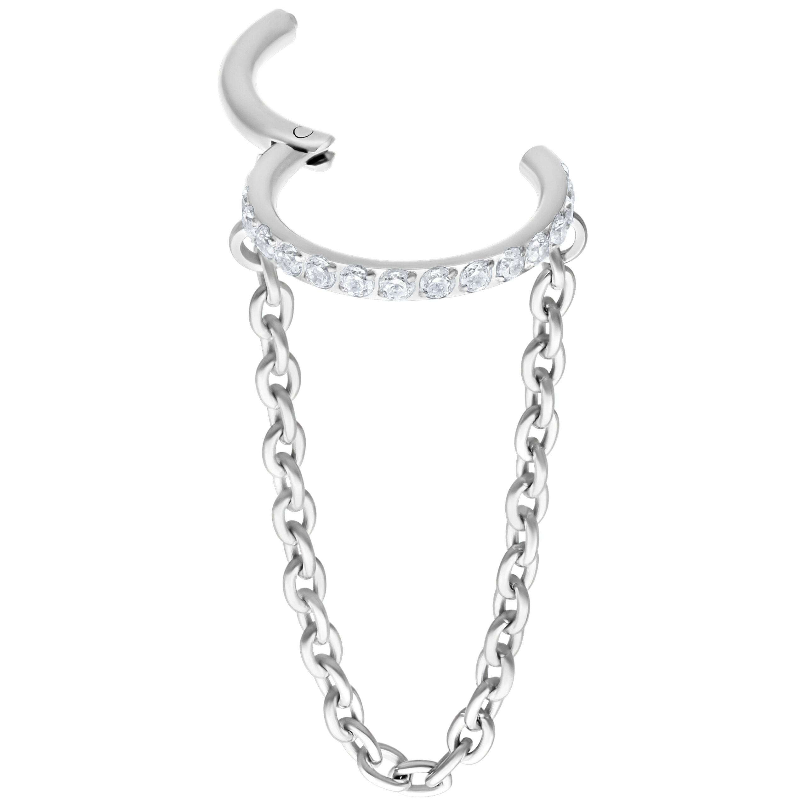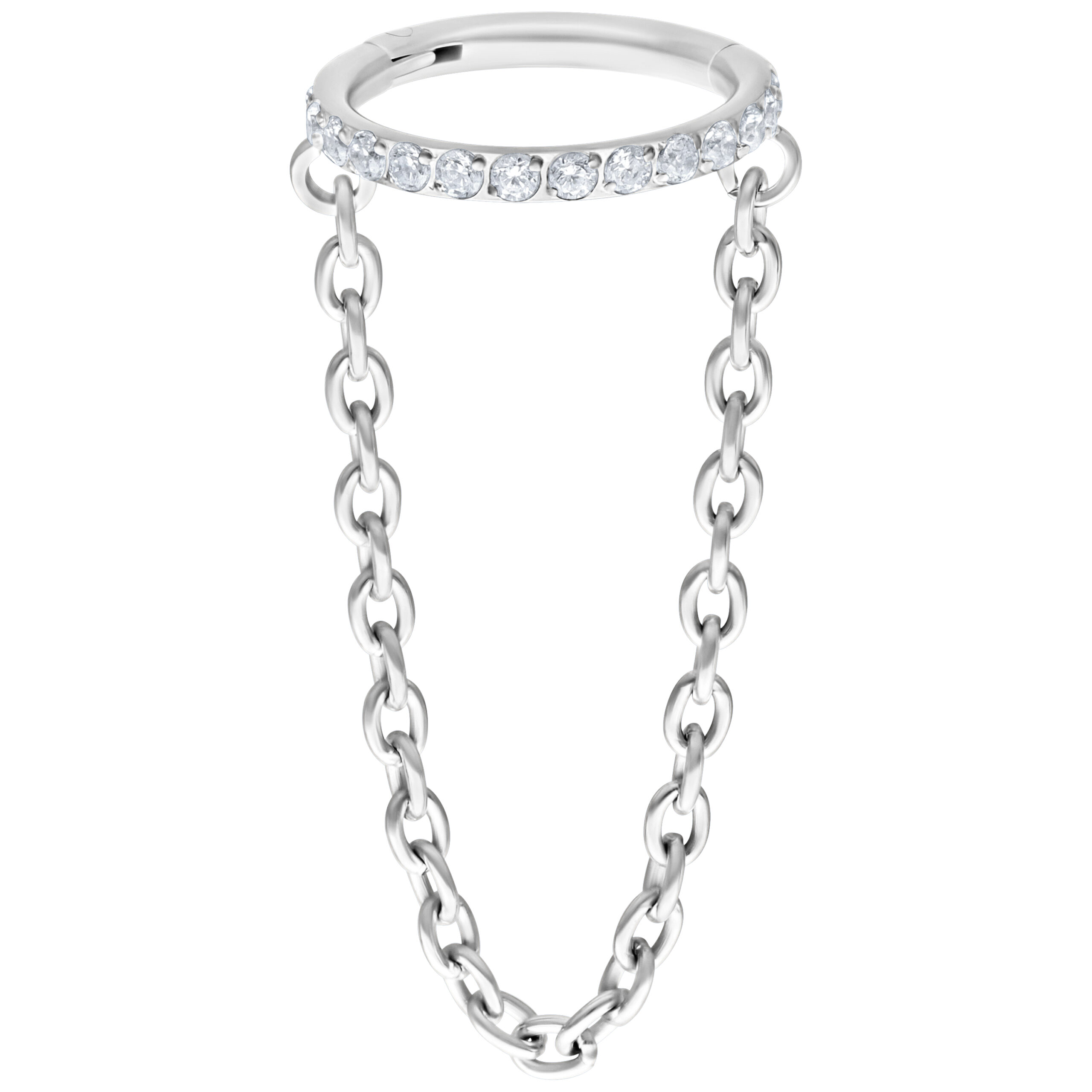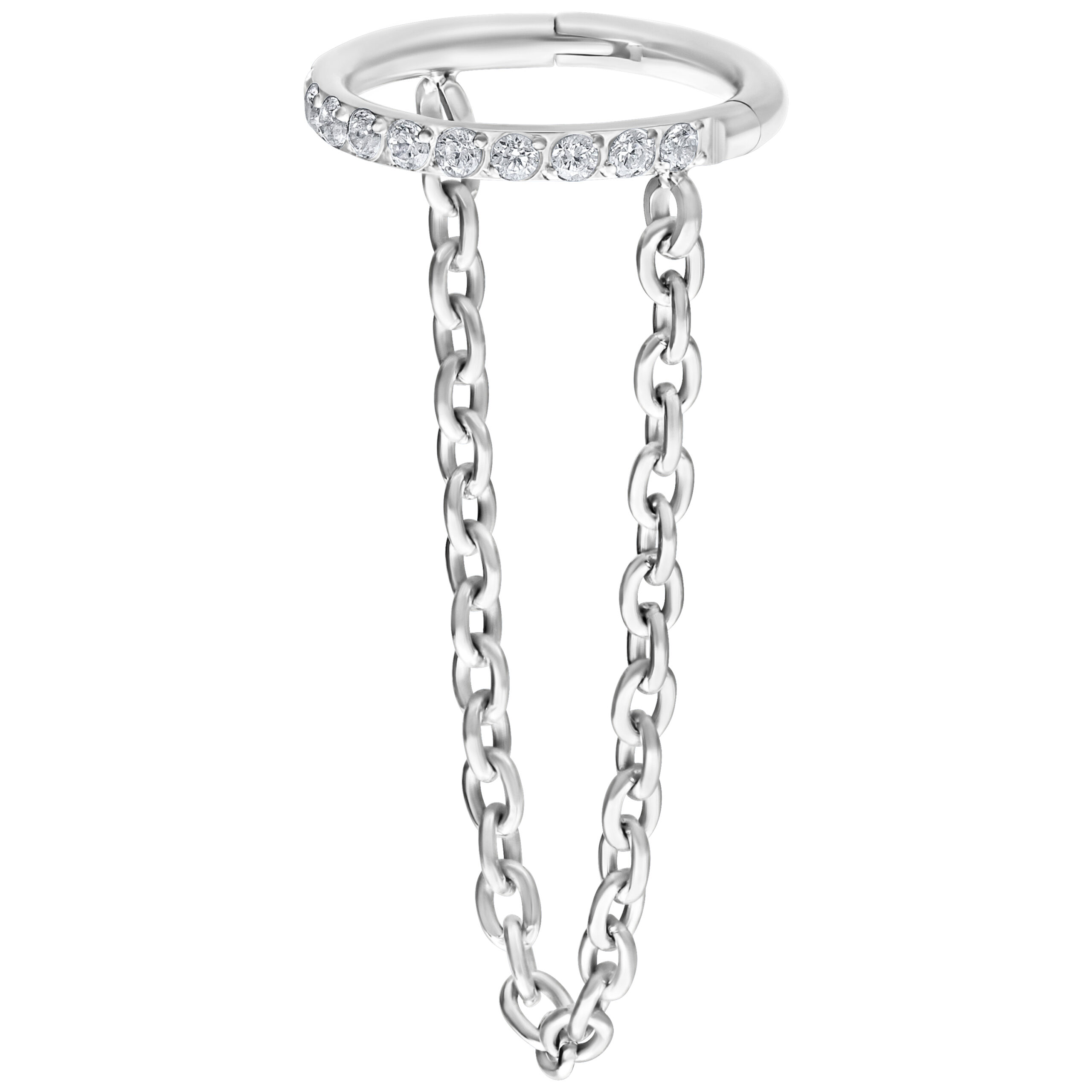 The hinged ring allows for easy insertion and optimum wearing comfort. This piercing is also made from high-quality titanium with a white gold-coloured PVD coating.