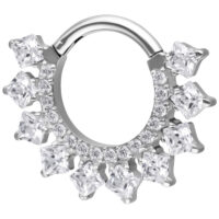 Titanium is lightweight, highly skin-friendly and exceptionally durable, making it ideal for everyday wear. Featuring a secure and easy-to-use clicker mechanism, this ring is designed for septum and daith piercings. The Crystal Halo Clicker is perfect for those who appreciate elegant jewelry with a refined, luminous finish.