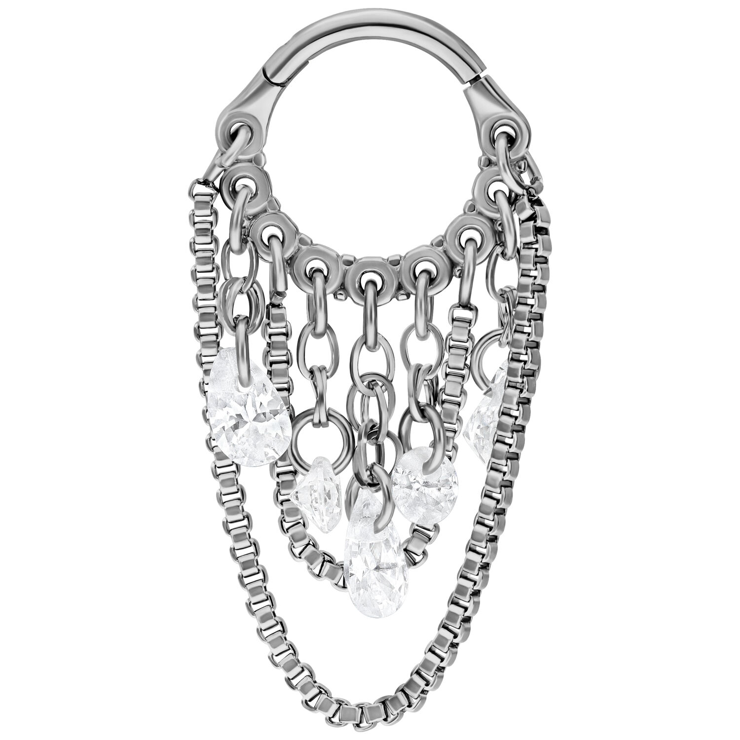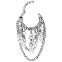 Want to stand out? Then the Crystal Snakechain Clicker is your new signature piece. This extravagant jewel made from high-polished titanium blends urban snakechains with dazzling crystal drops into a design crafted for true individuals. Layered, expressive, and unapologetically modern – this clicker is more than just piercing jewelry. It’s a statement.