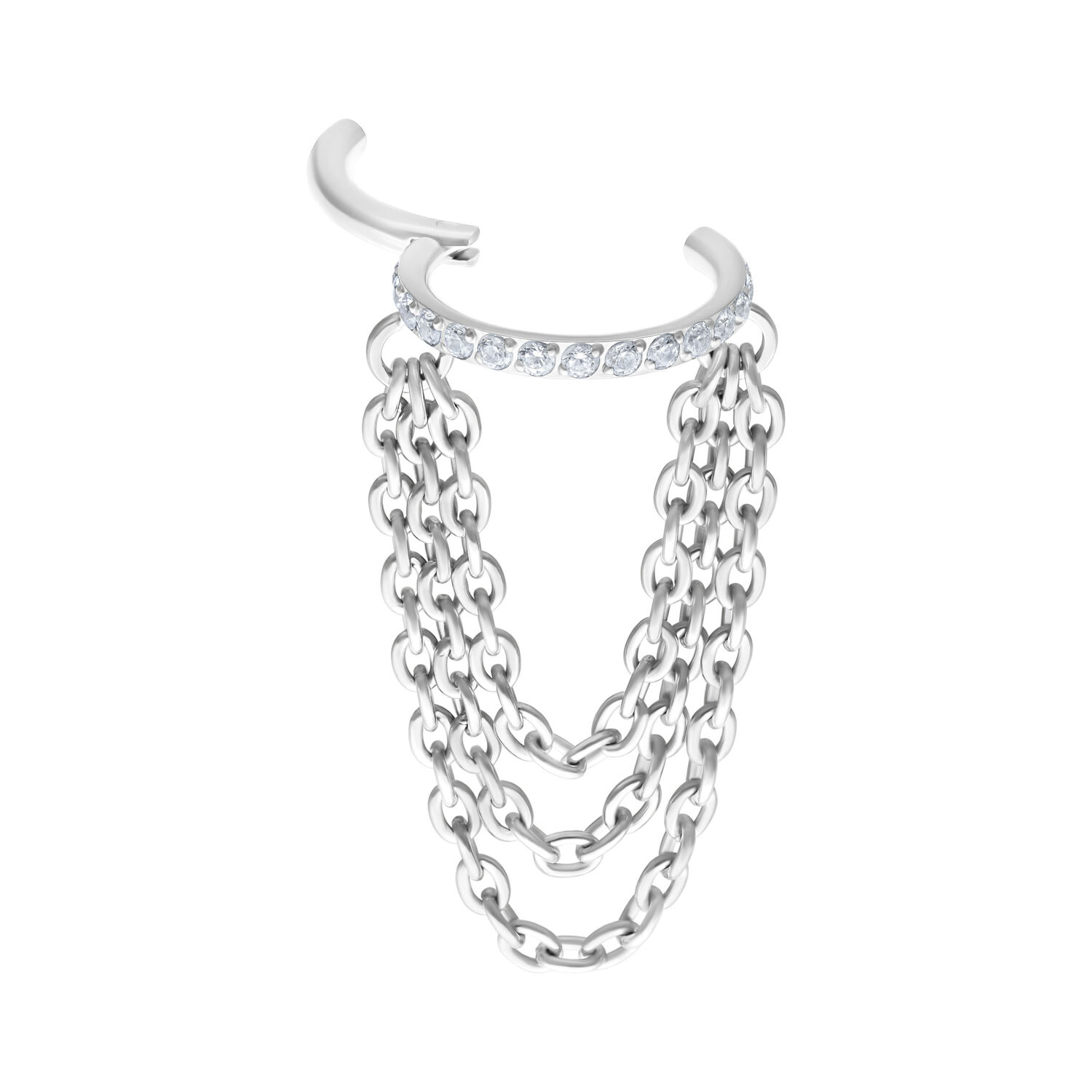 The Crystal Triple Chain Clicker is something very special. With its 3-row chain, it hangs elegantly from your ear. The crystals sparkle beautifully in the light. This combination is definitely an eye-catcher!